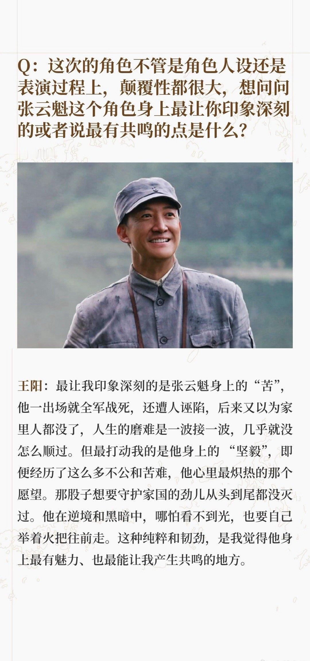 在剧中,张云魁的命运时刻牵动着我们的心,而作为观众,我会好奇,演员王阳作为张云魁的饰演者,是怎样理解这个人物的?在创作过程中又经历了什么?在wb平台4月9日的云访谈中,王阳回应了网友提问,从这些真诚的文字中,可见演员对这个角色的真挚情感和深刻感悟。
