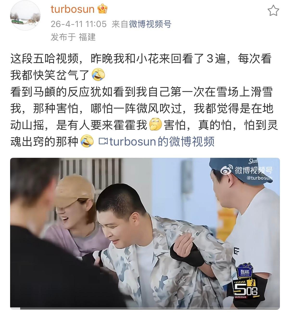 孙俪和小花看五哈孙俪发博说和小花来回看了三遍马頔学轮滑的视频,犹如看到自己第一次在雪场上滑雪,邓超回复:你滑雪比这个好笑30倍哈哈哈哈哈哈哈我不行了这个邓老头又要挨打了吧~ 哈哈哈哈哈