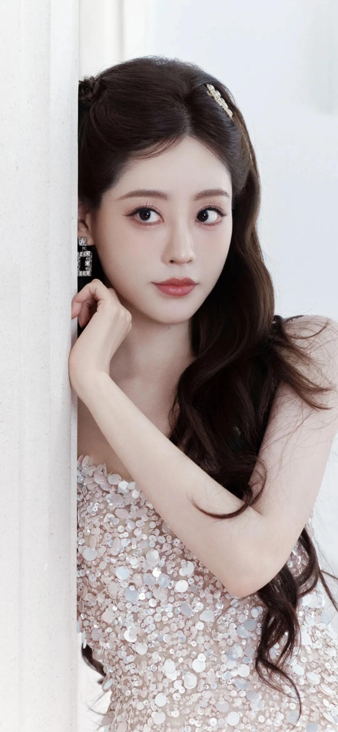 美女壁纸~虞书欣,一袭渐变紫纱裙,将浪漫与温柔揉进春日花园。抹胸设计勾勒精致肩线
