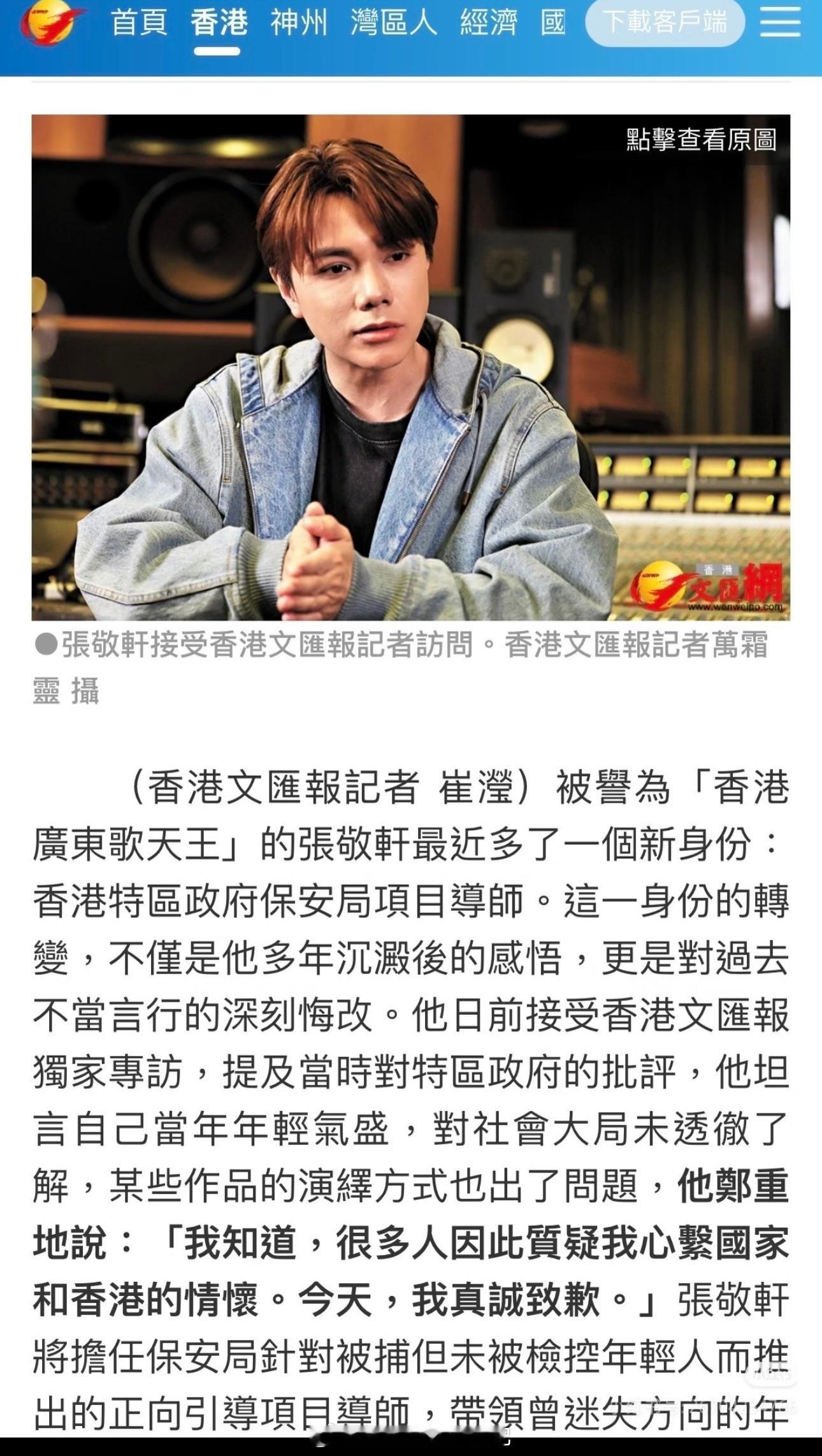 张敬轩有了新的工作发展,两件事:1.对曾经年轻气盛时的一些言论道歉;2.担任导师工作,对一些年轻人进行正向引导