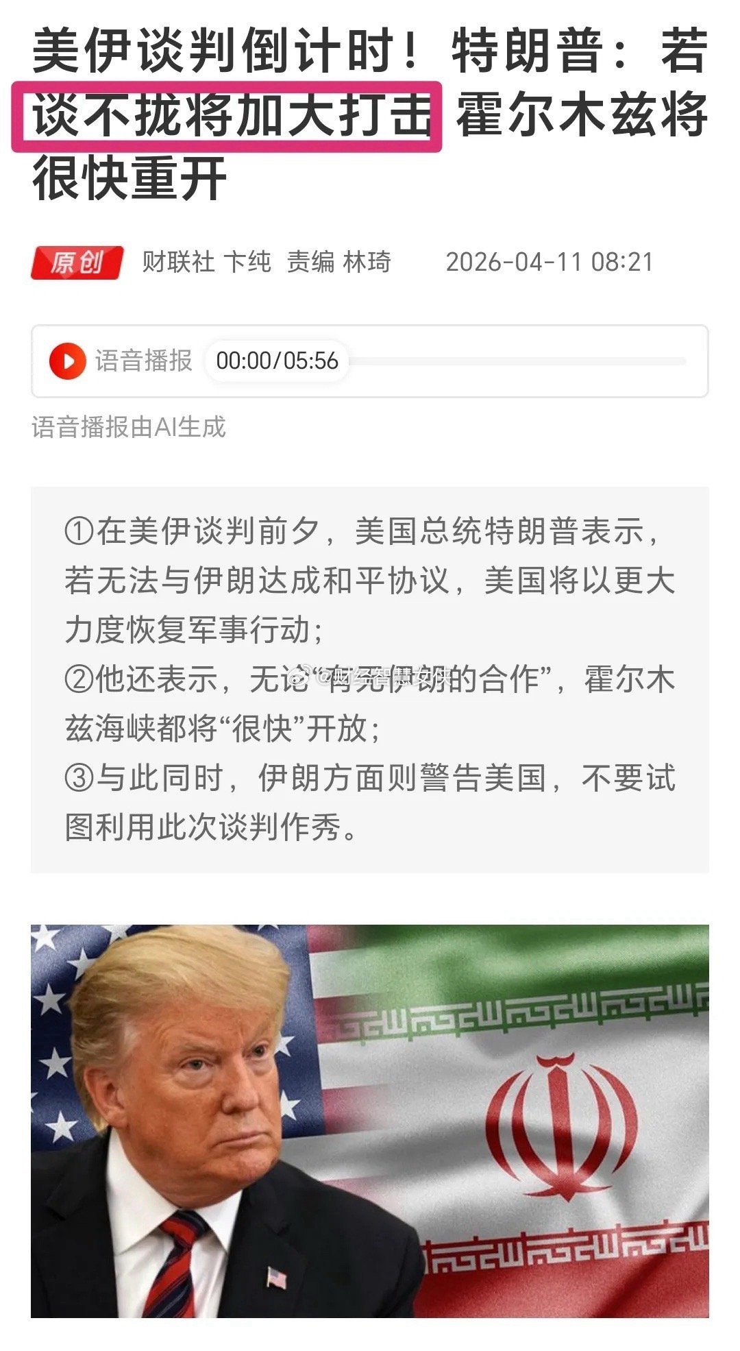美伊谈判正式开启,这是全球都盯着的大事!谈判前双方火药味十足:老特放出狠话,谈不