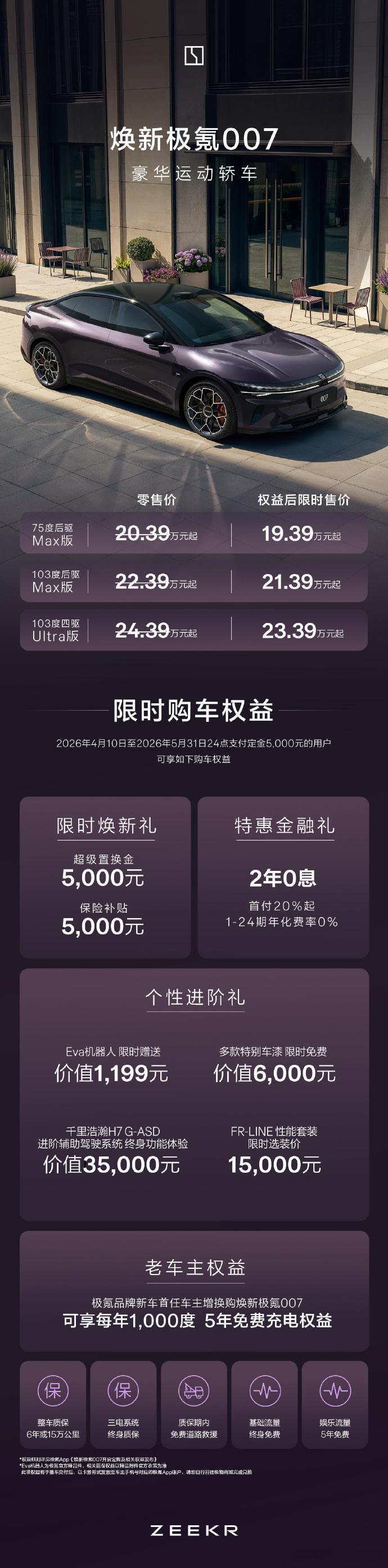 新款极氪007、新款极氪007GT限时售价19.39-23.39w。
