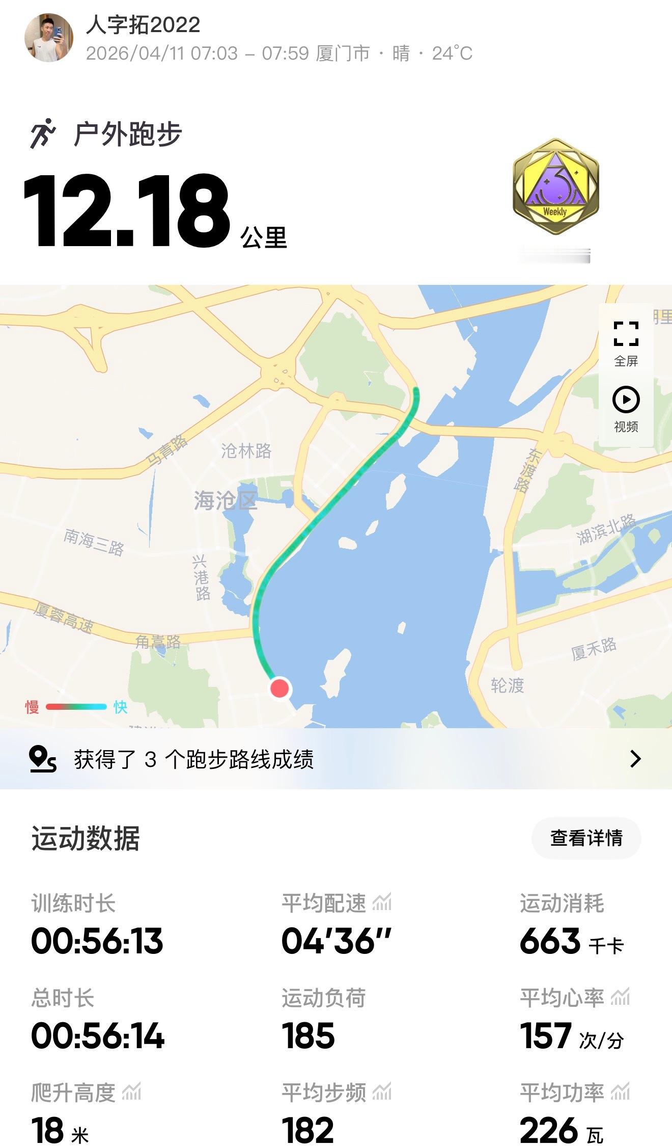 起了个早,没想到还是赶了个晚,一趟来回都没遇到跑步的朋友,是我太晚到了还是大伙全在湖边跑了,本来计划半马的,一个人太闷跑不动了,不过还是喜欢这里熟悉的环境,跑起来浑身都是劲 厦门