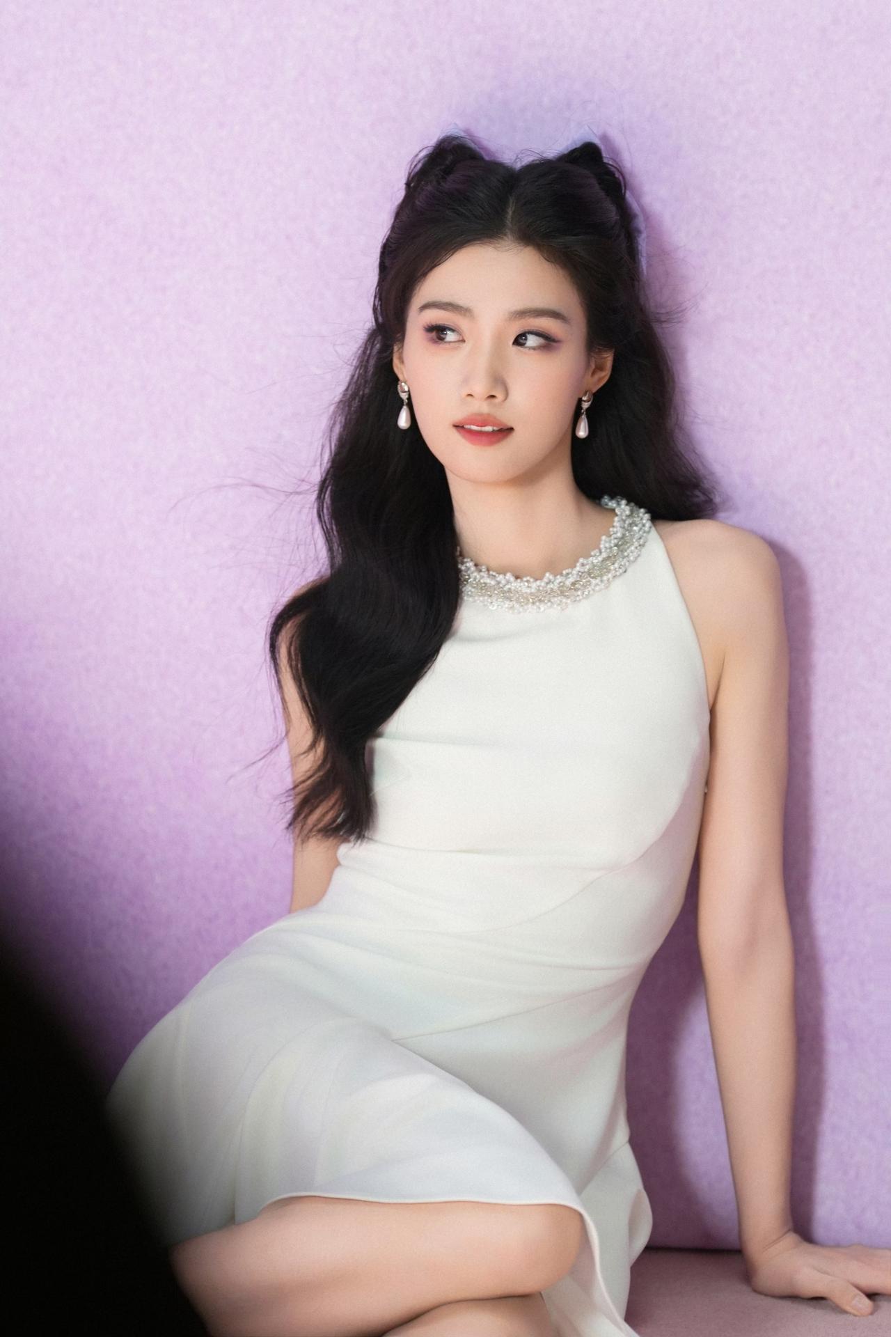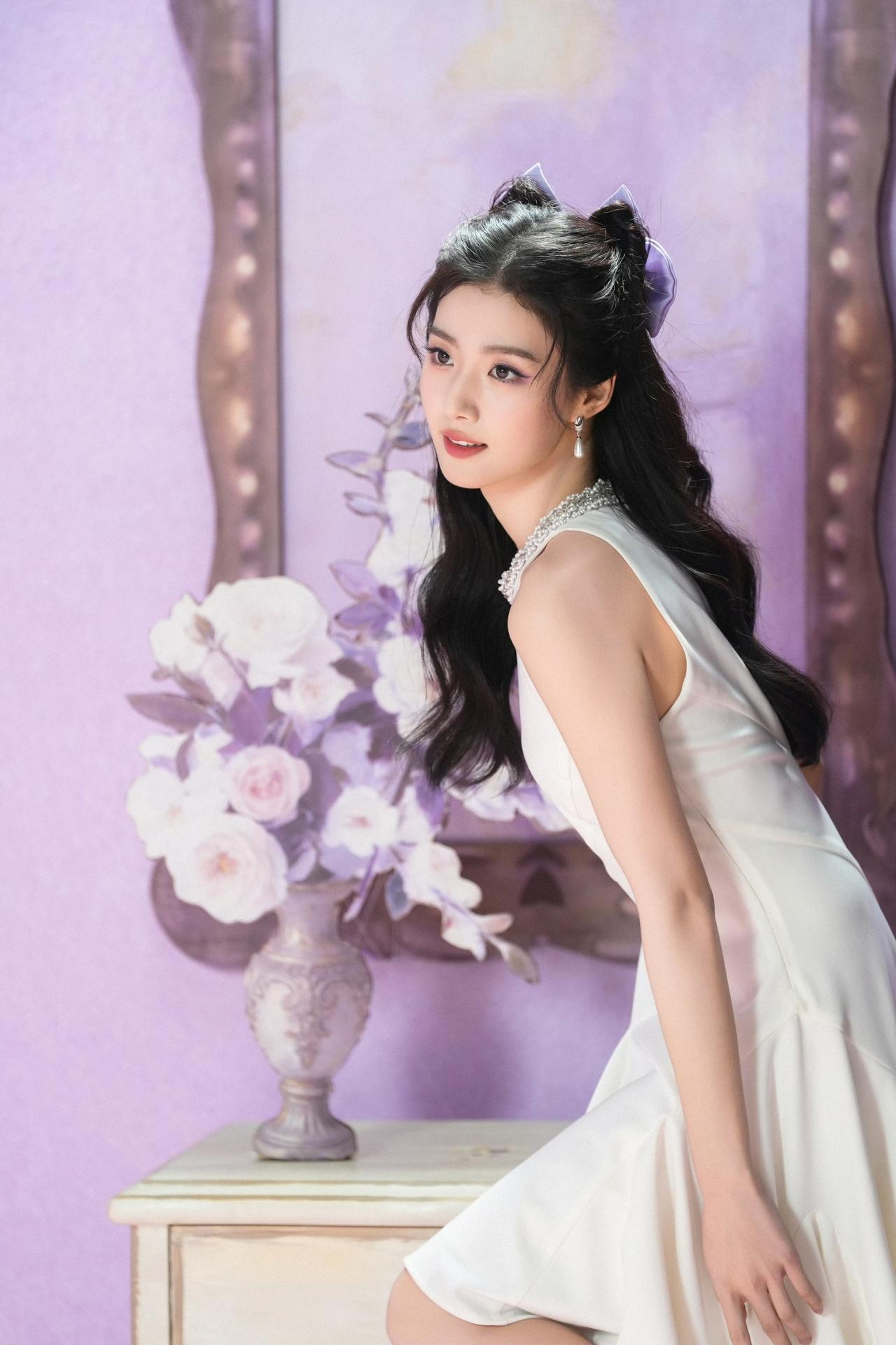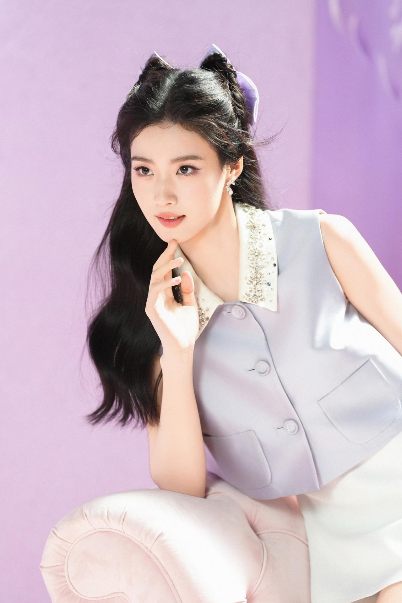 灰调挂脖套装,长发灵动眼神清冷——卢昱晓。每日明星美图分享