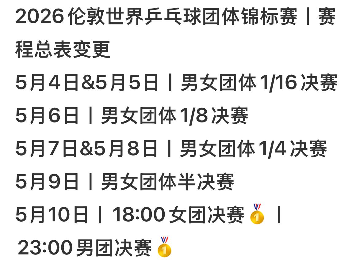 伦敦团体世乒赛赛程总表变更