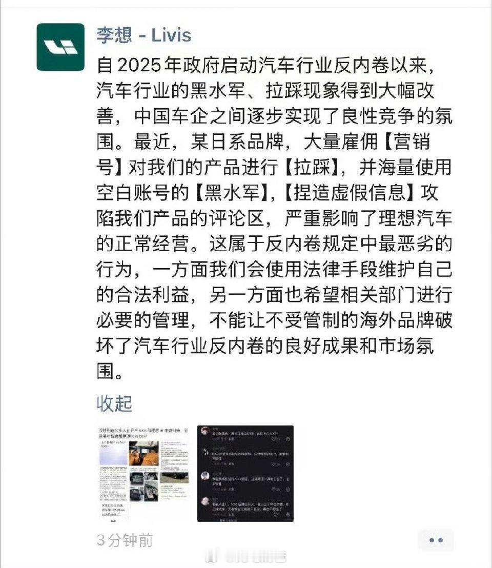历史总是惊人的相似,抗日战争时期,伪军阴损的招数往往和日军比起来有过之而无不及,现在日产nx8无底线的碰瓷理想i6和理想L6,评论区各种拉踩 恶意黑理想的车和车主,更恶心人的是把车都摆到了理想门店的门口位置,希望理想不要在置之不理,用法律维护自己吧李想朋友圈飙脏话李想朋友圈疑似内涵东风日产李想朋友圈发飙疑似内涵东风日产