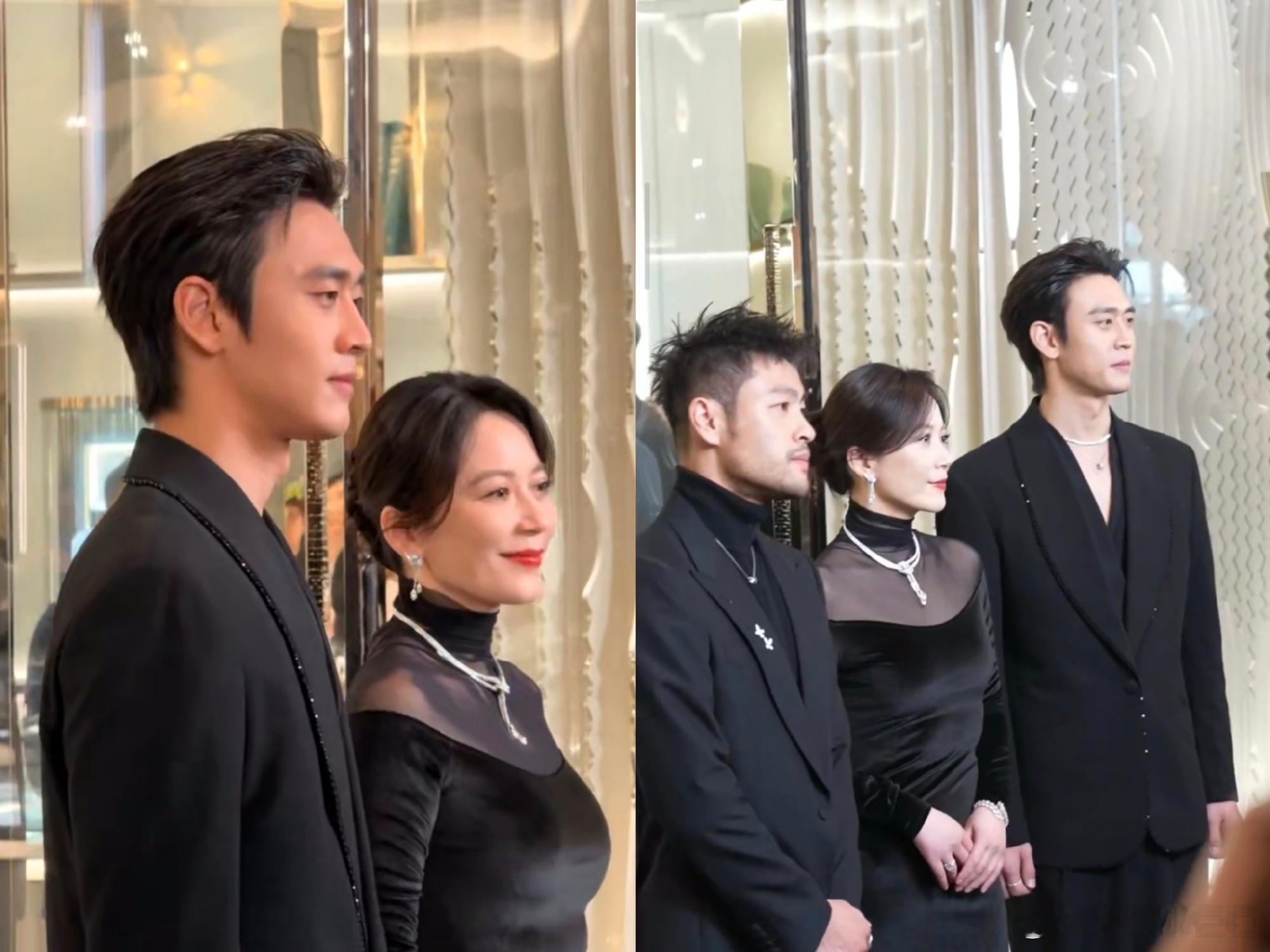 俞飞鸿王天辰同框没想到能看到俞飞鸿和王天辰同框,完全是破次元的惊喜,俞飞鸿的优雅知性是刻在骨子里的,岁月沉淀的从容太迷人,王天辰的全黑西装剪裁考究,沉稳又带点少年锐气,两种气质碰撞出极强张力,现场画面质感直接拉满。