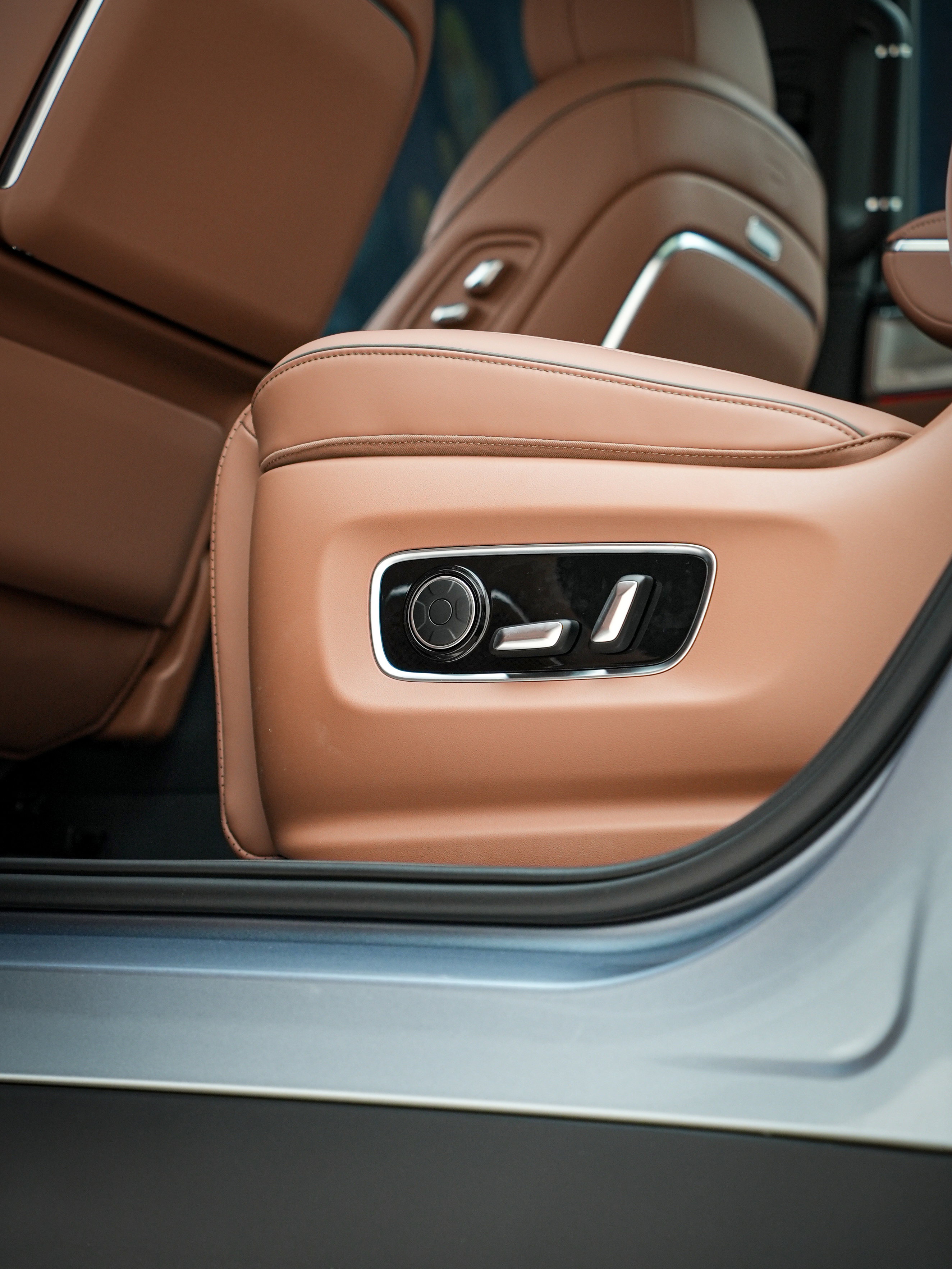 前脸温文如玉,没有锋利的切割线条,整个外观透着一股儒雅的气质。5米2的车长,3米1的轴距,三排都是宽适大沙发,二三排之间的过道空间很宽裕,不用很侧身的挤过去。主驾和副驾后面都配有双桌板,而且还带杯托,后排有15.6英寸的娱乐屏。你敢信,这么一台全尺寸6座SUV,居然是五菱造的?