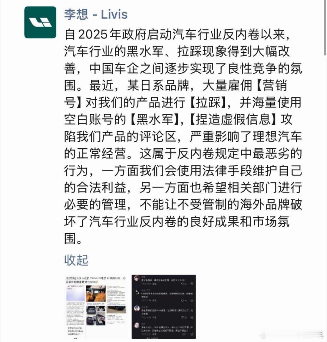说实话哈,我确实没怎么在我的评论区碰到过吹理想的水军,其他的品牌倒是不少。吹一下自己品牌的水军我还算能理解,增大一下声量嘛,但是跑到竞品评论区去疯狂拉踩的黑水军那是真的有点恶心人了李想朋友圈飙脏话李想朋友圈疑似内涵东风日产李想朋友圈发飙疑似内涵东风日产
