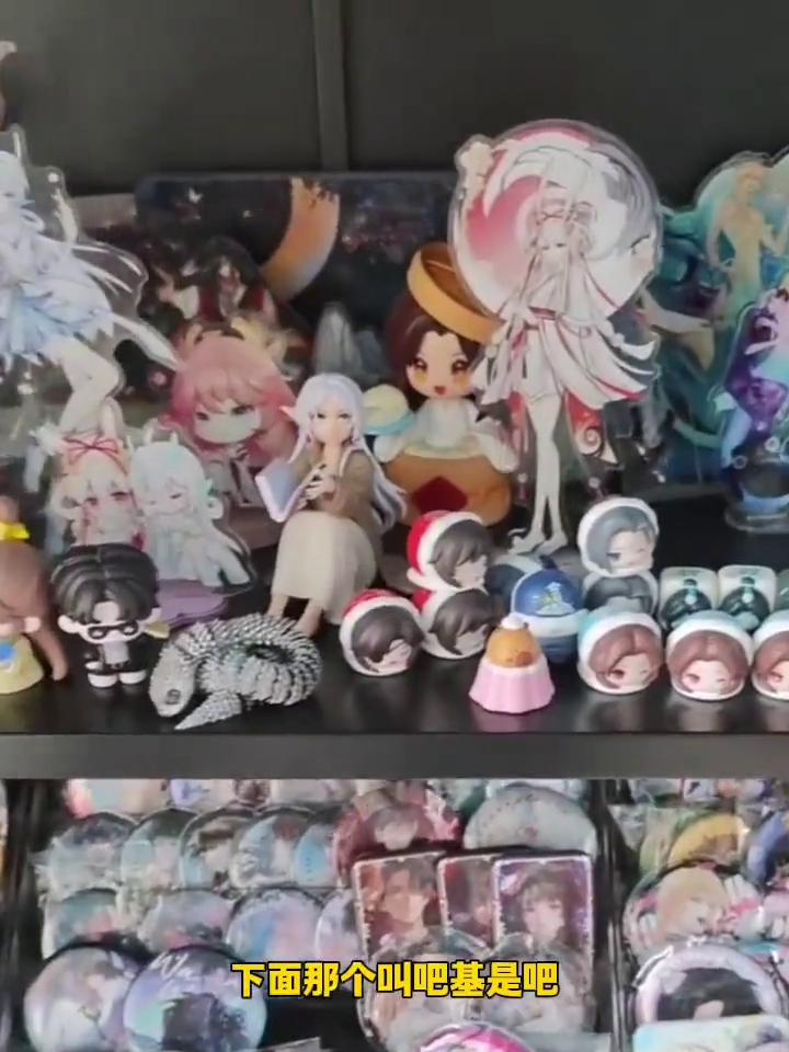 妈妈熟练的介绍着满柜子的周边,一听就知道她专门了解过女儿的爱好。下面那个叫吧唧是吧?因为以前我们都是叫徽章,上面还有很多单美书,甚至有些书是妈妈主动介绍给女儿的。这个书不用大家跟我说,我知道的有一些是同仁文,这些都是我介绍她看的,因为我觉得这些书其实真的写的都还是挺不错的。