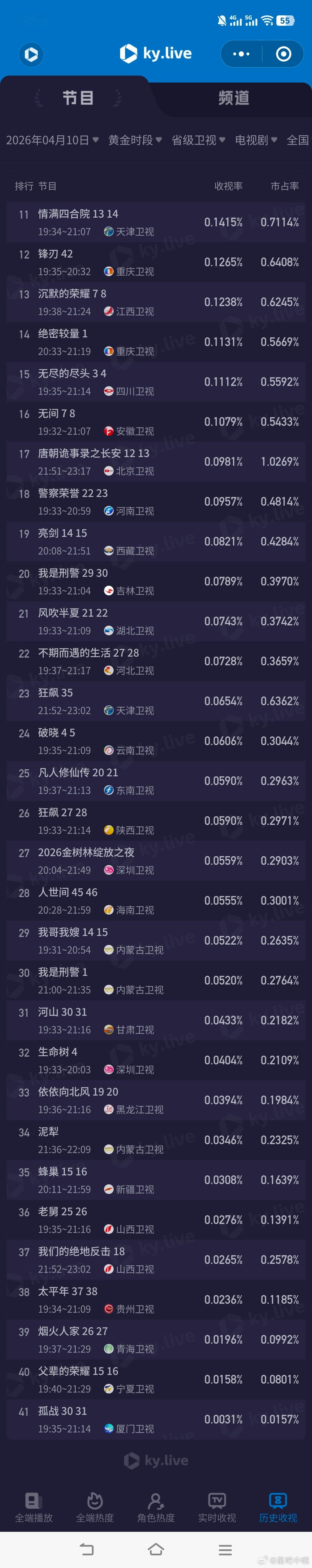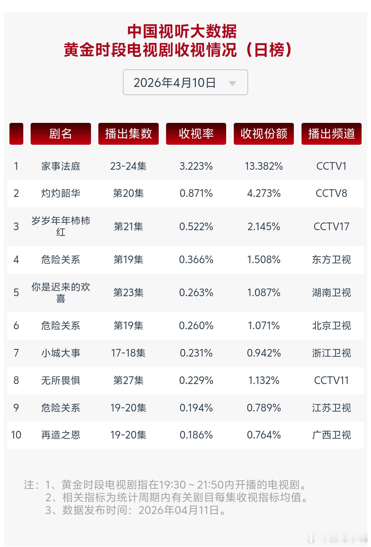 4月10日cvb收视日报,《家事法庭》大涨!家事法庭3.223,酷云1.6873