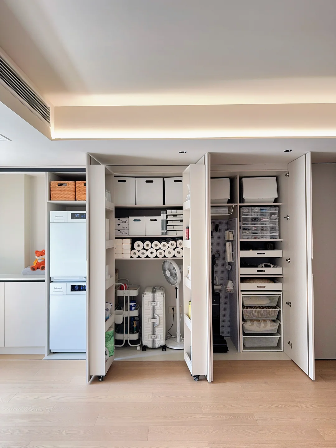 当初选它就是冲这个纯平0凸起的设计,上下叠放,和定制柜严丝合缝,关上门就是一整面整洁的收纳墙,用了两个月,开合丝滑、颜值依旧能打。微晶玻璃门板不沾指纹、不挂污,日常擦灰超省心,小户型也能拥有通透整洁的横厅,每次打扫完看着都心情舒畅!