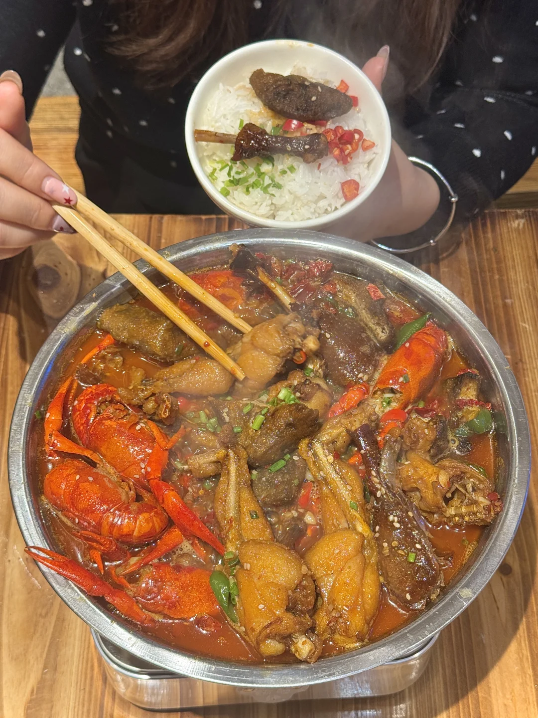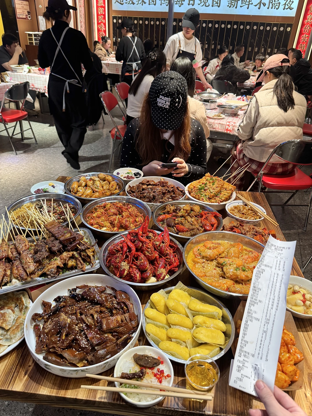 吃到了小龙虾一锅炖、牛肉拌面、猪脚拌饭、玉米饼等特色美食~巨巨巨香!烧烤都是手工现串的,牛肉串、烤鸡翅、香干都绝……特色卤鸭好好吃🤤🤤盲点一桌没踩雷!
