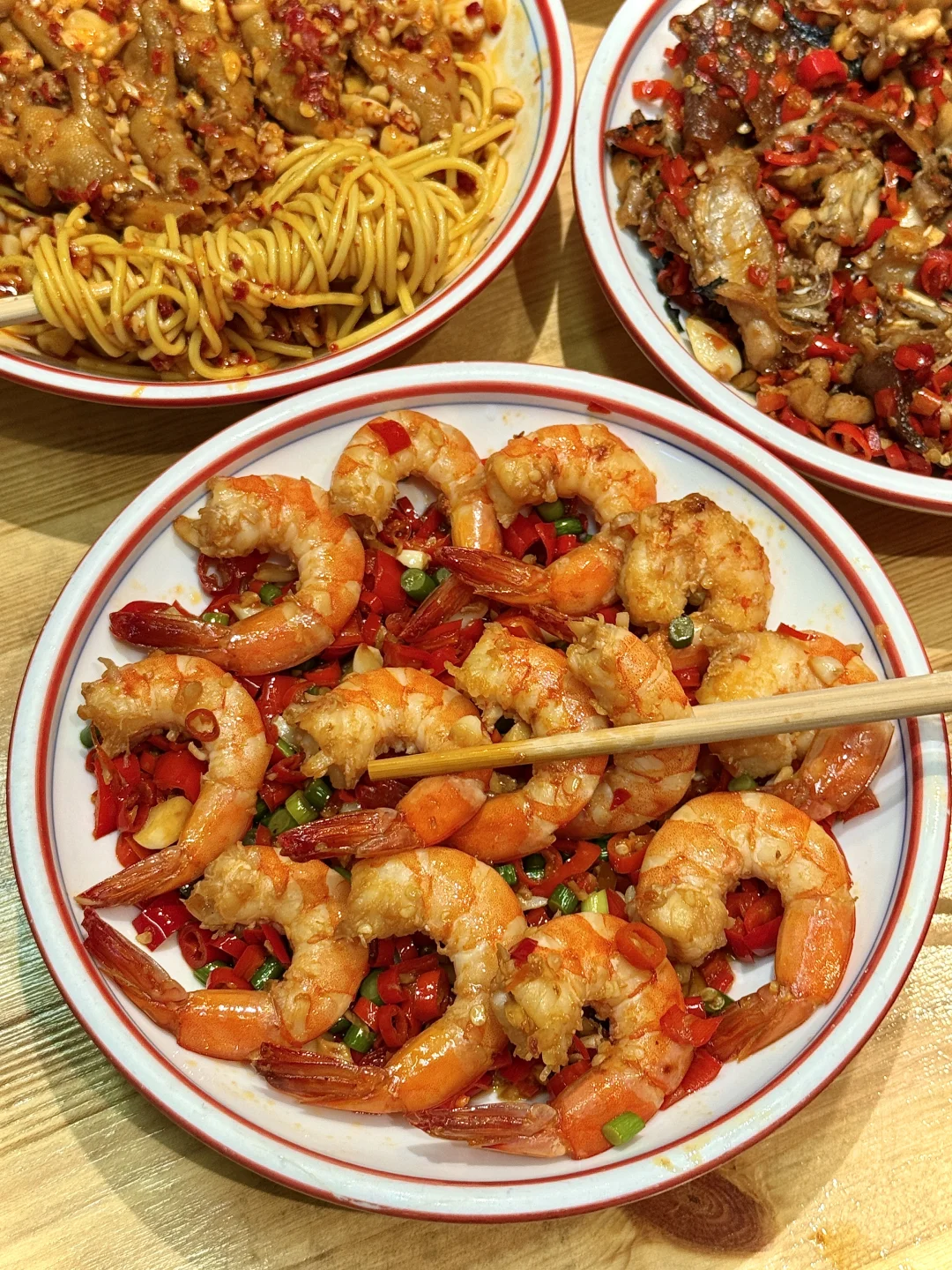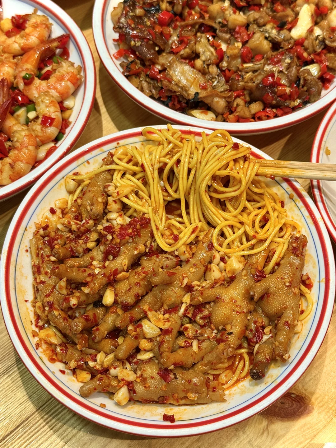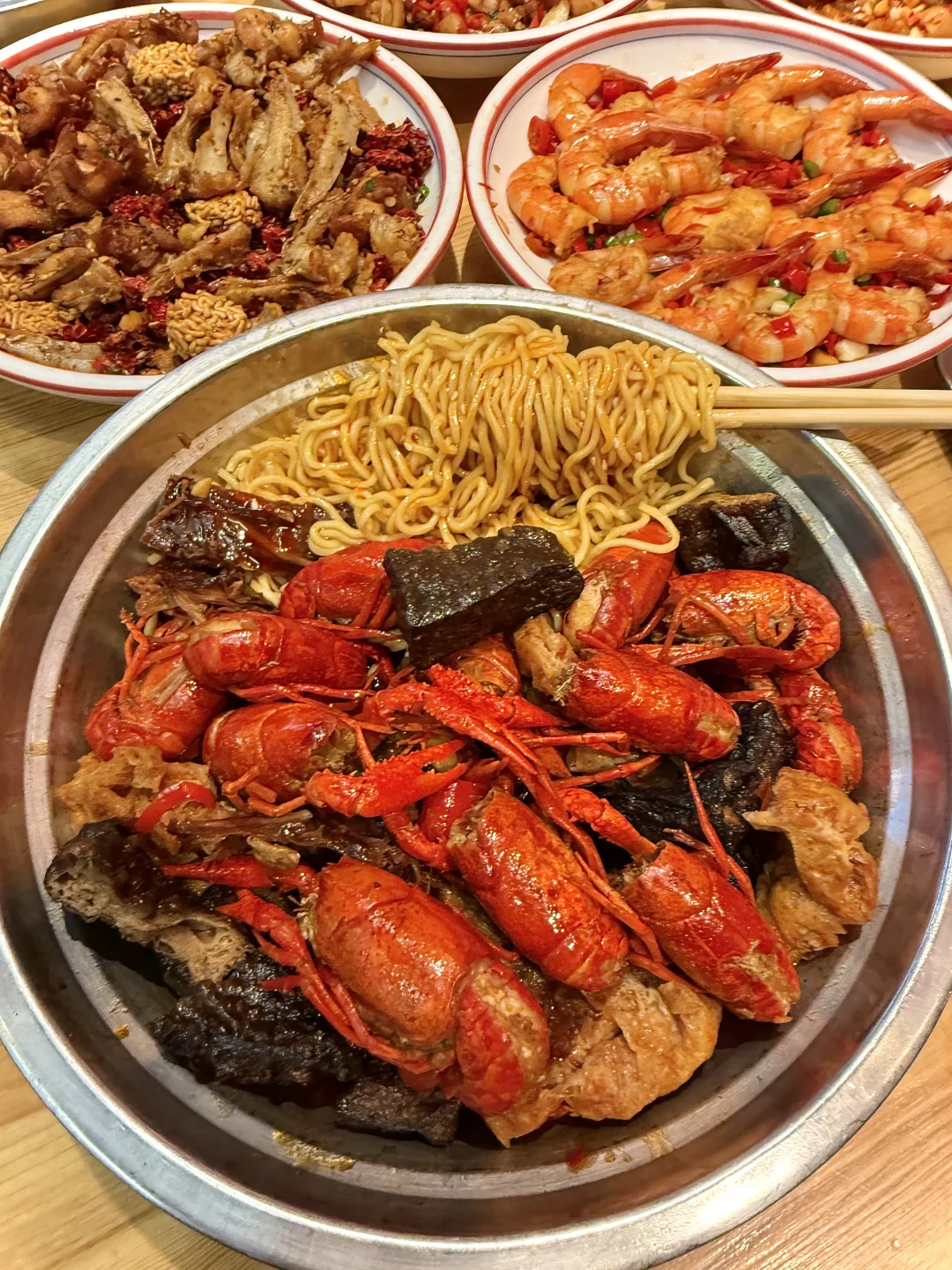 好多十几二十块菜!菜品如图所示平价份量足!芥末虾球、开花烧卖、香辣基围虾、酱板鸭牛蛙…边吃边夸,每个菜都很有锅气!好好吃!