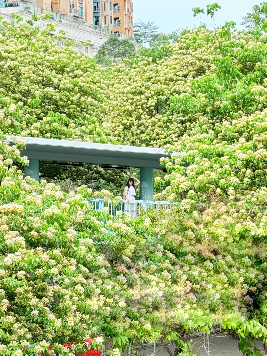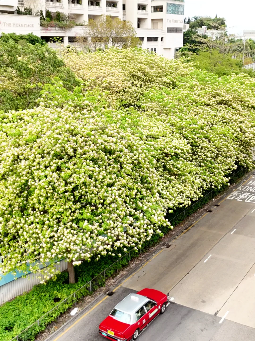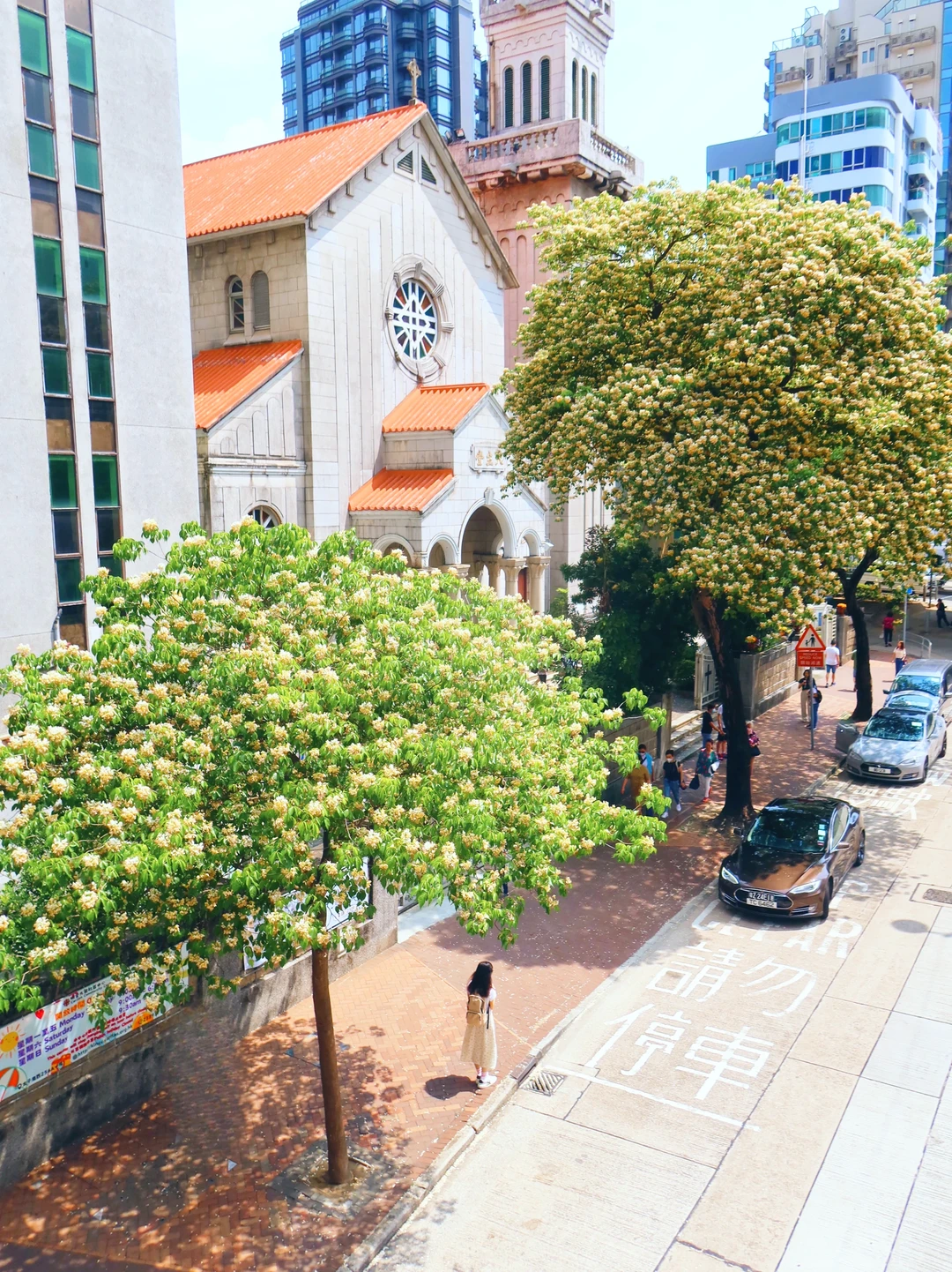 季節限定的鱼木花,不止在圣德肋撒堂和櫻桃街,附近MOKO新世紀廣場出来,整條太子道西都是浪漫鱼木花海!