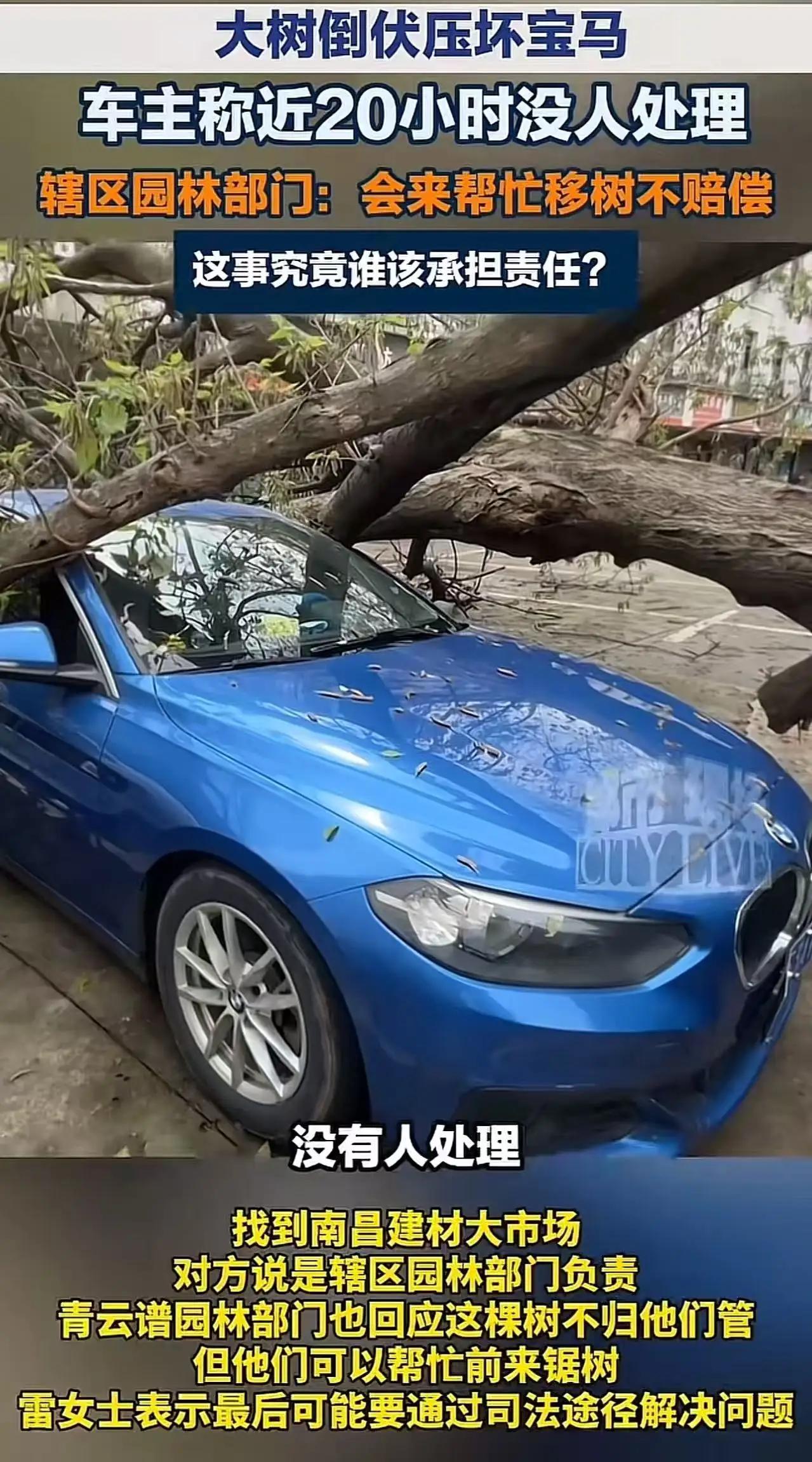 这事你怎么看?园林部门该不该赔?评论区说说你的看法。车被树压了