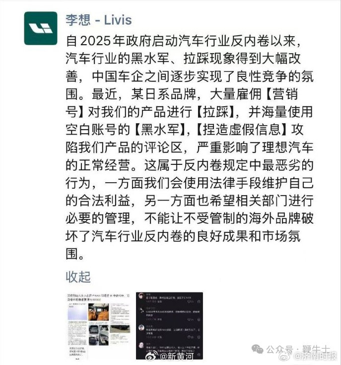 今日,理想汽车CEO李想在朋友圈言辞激烈地表示:“历史证明了,伪军往往比鬼子更操蛋,车企也不例外。”(综合自凤凰网科技、)