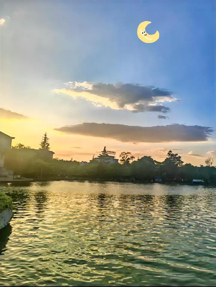 云南的好风景! 家人们快看!傍晚的湖边也太治愈了吧! 你看这夕阳,把半边天都