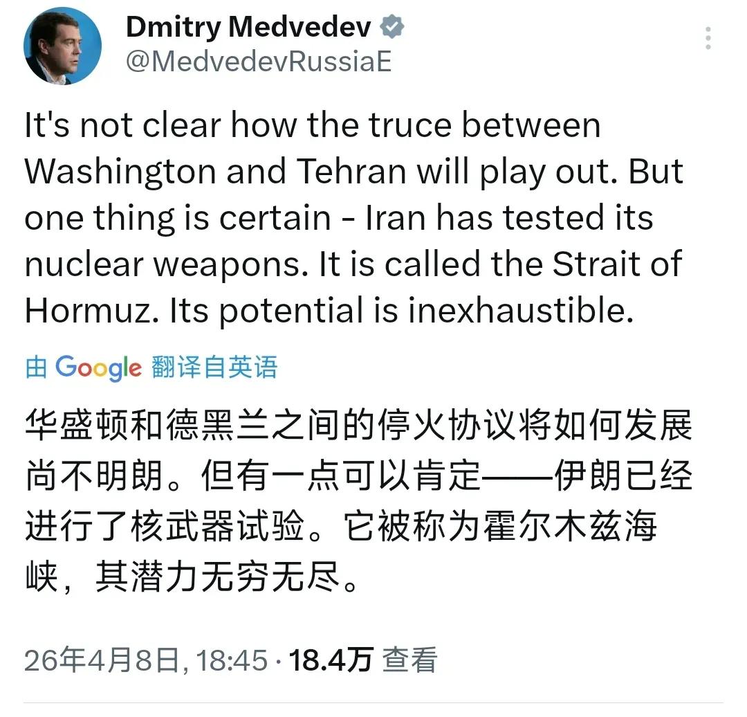 伊朗从未说过在霍尔木兹海峡已经布设了水雷,不过谈判双方都能自找台阶下,谈判或许取得些许成果。没有人怀疑美国具有夺取该海峡岛域的能力,却没有能力长期控制这些海岛,因为一旦登岛成功,近6万名美军士兵又成了伊朗的活靶子。梅德韦杰夫将霍尔木兹海峡称之为伊朗的“核武器”并不为过。