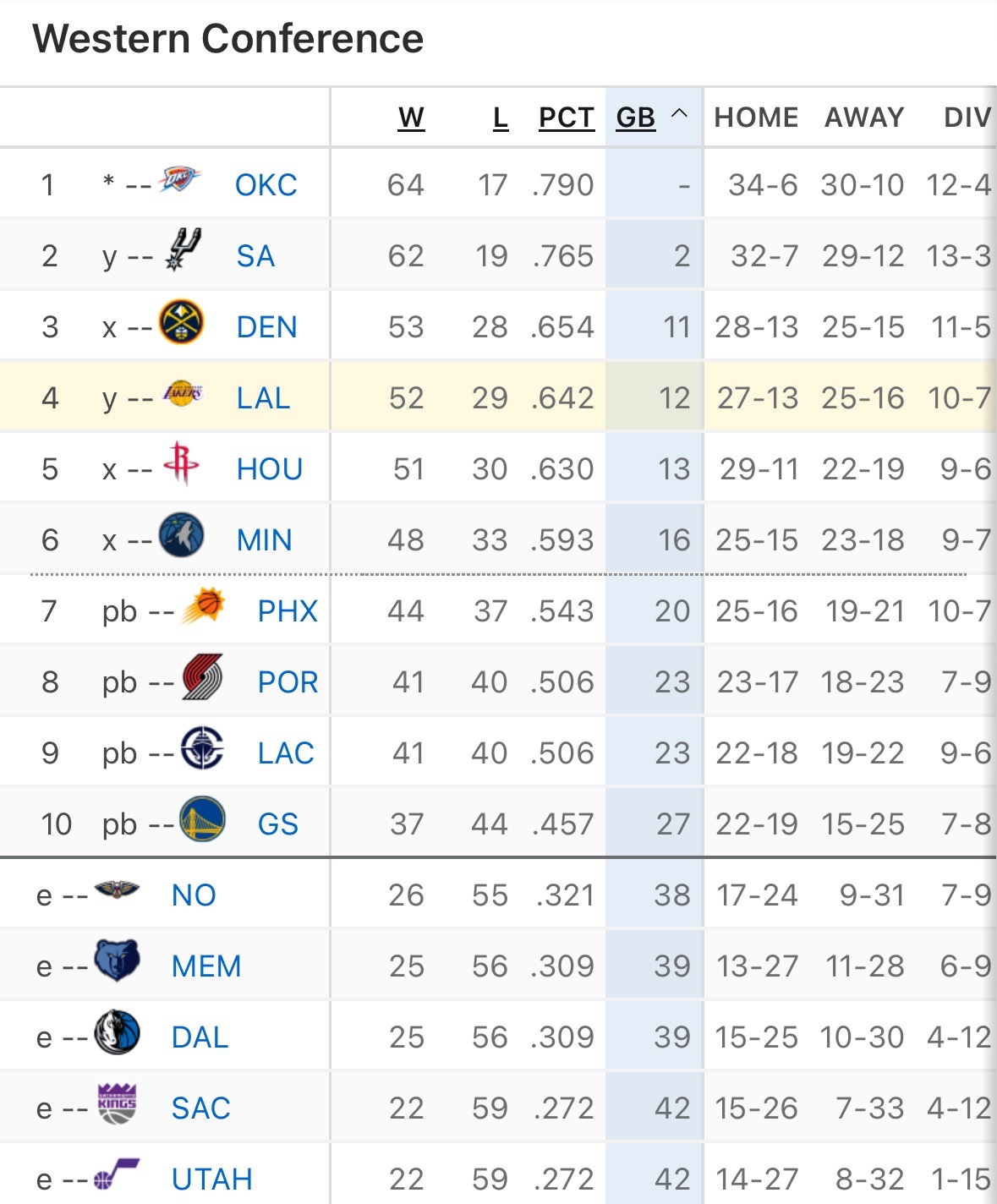 如果马刺有赢下掘金的趋势,湖人想排第三还是第四,可以由自己决定。如果掘金有赢下马刺的趋势,湖人直接上替补打完比赛完事,不计输赢。