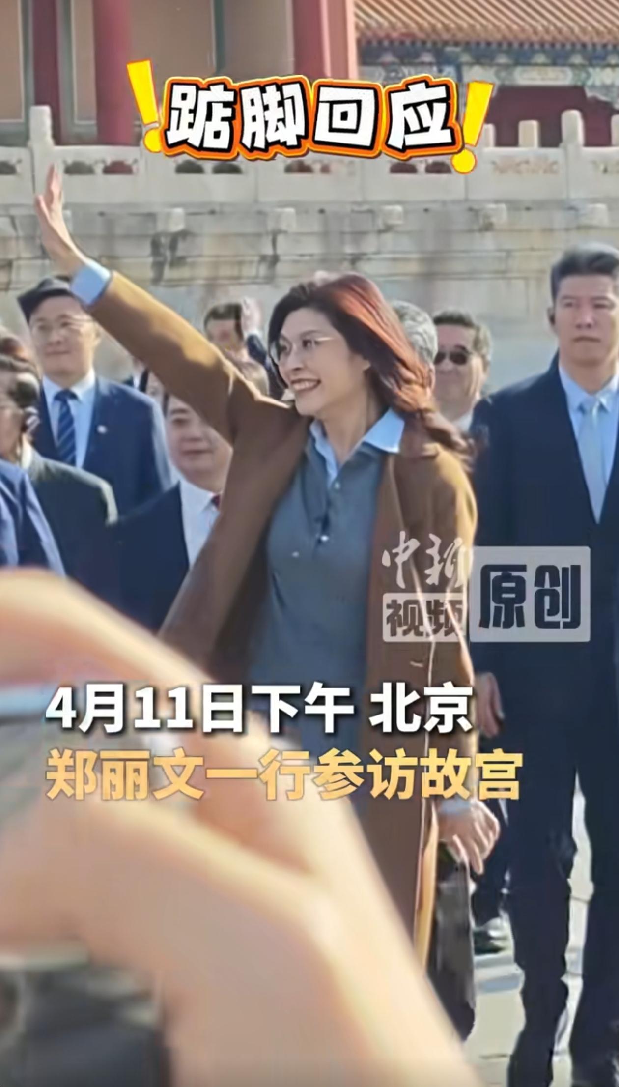 郑丽文来了北京,又怎能不来故宫?现场游客偶遇郑丽文很是惊喜,对其高呼“欢迎回家,两岸一家亲”,郑丽文踮脚回应,挥手示意,还不时拍照留念。