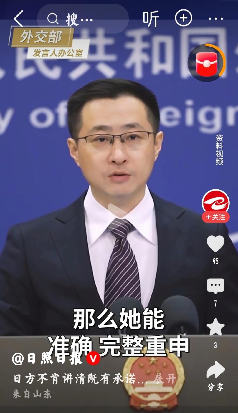 2026年4月11日,日照日报转发,中国外交部发言人所述,日本首相高市早苗,能够准确完整重申1972年《中日联合声明》所述内容吗?为什么日方就是刻意不肯讲清楚,既有承诺和法律义务呢?这背后到底是什么逻辑和居心?給中方和国际社会一个交代。