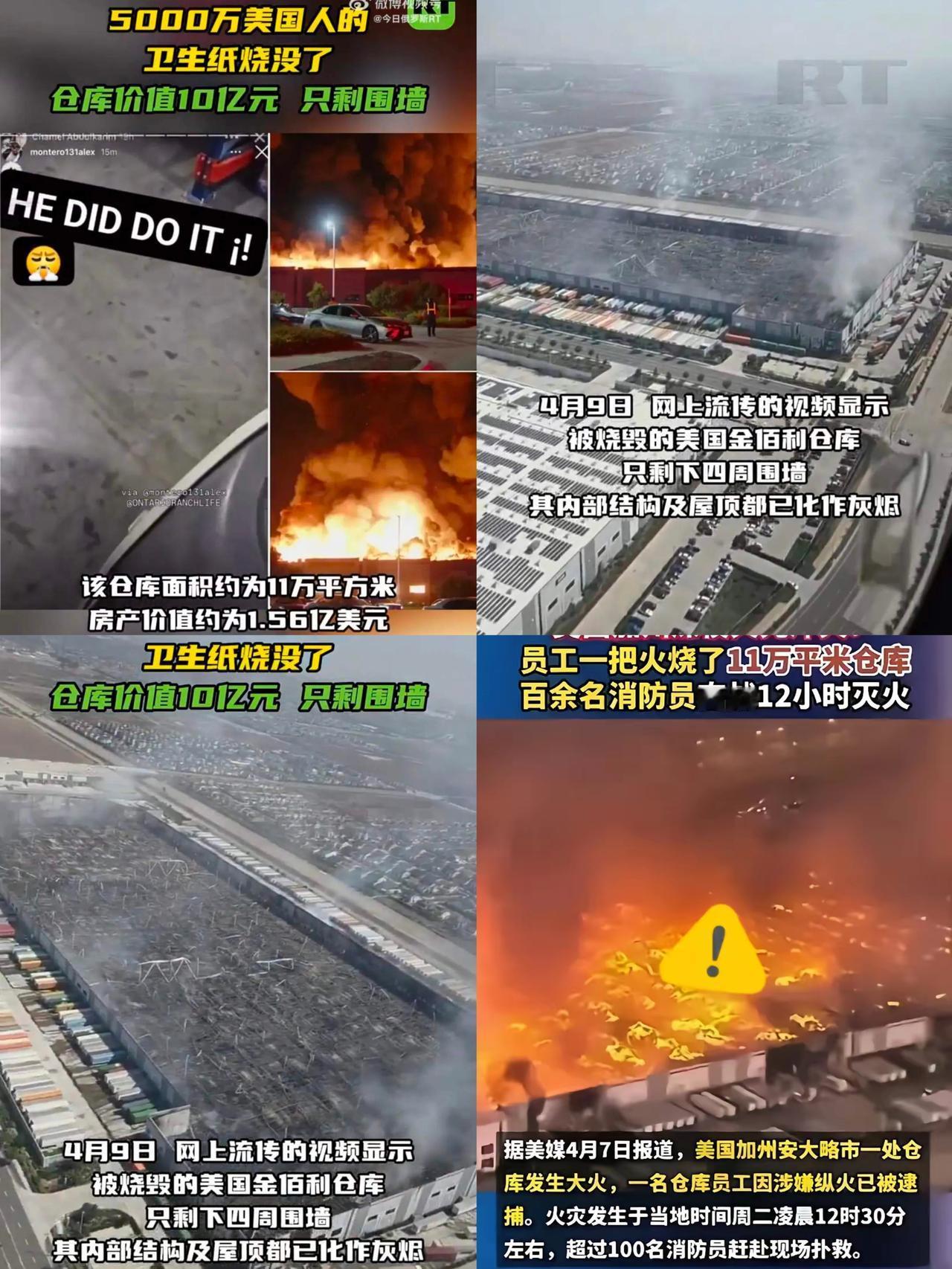 绝望到极致,才会用一把火宣泄所有不甘。美国29岁小伙凌晨点燃金佰利仓库,1.56亿美金的民生物资化为灰烬,175名消防员奋战一天一夜才控住火势。