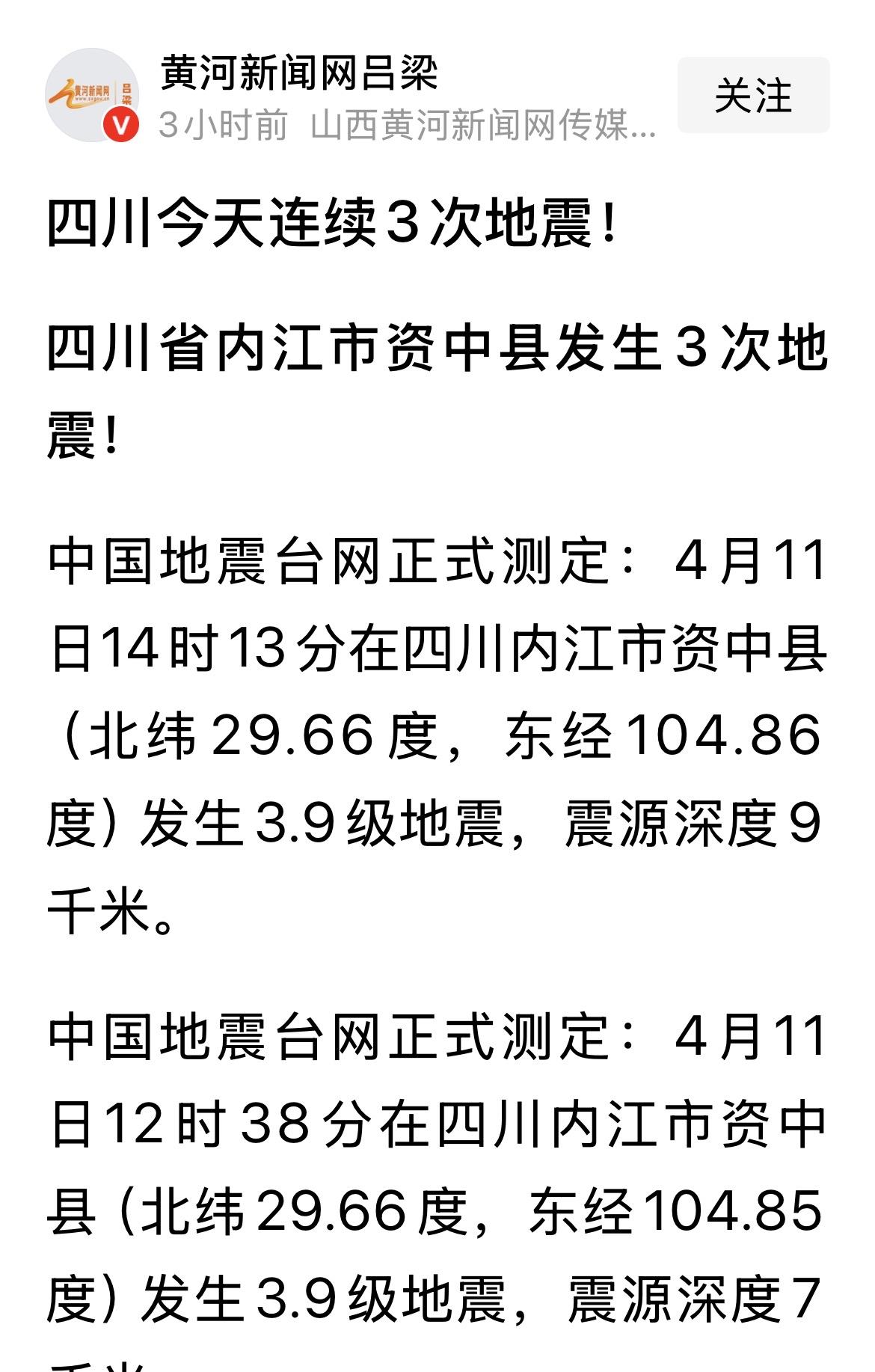 但是,巧的是,今天资中发生3次小地震!