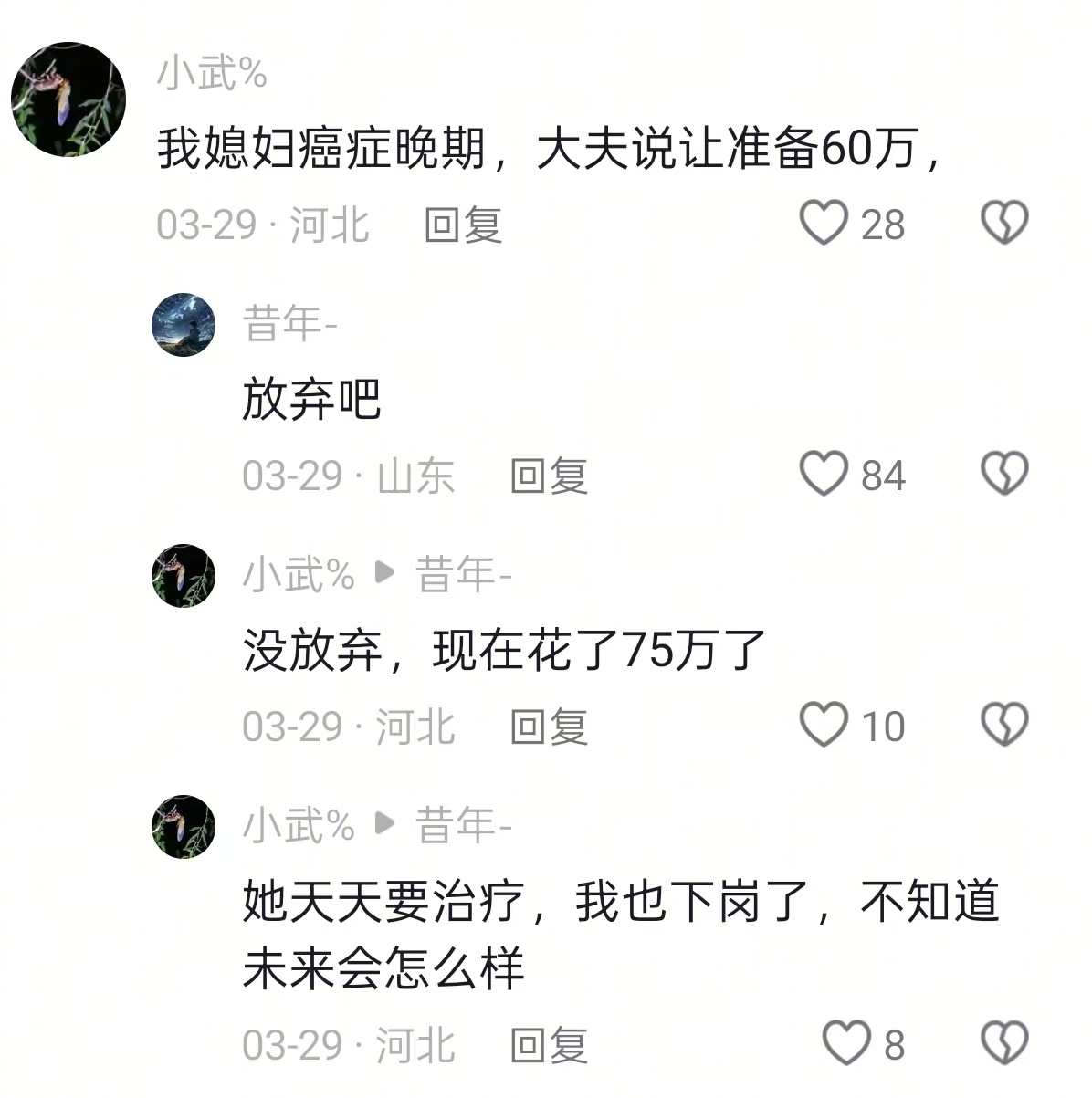有个亲戚58岁,2月底忽然查出来肺癌晚期,连手术的机会都没有。她得知后订了机票,