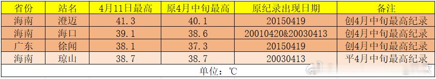 【气温】今天海南澄迈41.3℃、海口39.1℃、广东徐闻38.1℃,创当地4月中旬最高气温纪录。澄迈连续6天上40℃,创当地最长连续40℃日数纪录。海口连续7天出现35℃以上高温,为4月并列第二长连续高温。目前看,16日以后副热带高压明显减弱,因此海口的高温可能还要再持续5天,连续高温日数将达到破4月纪录的12天。