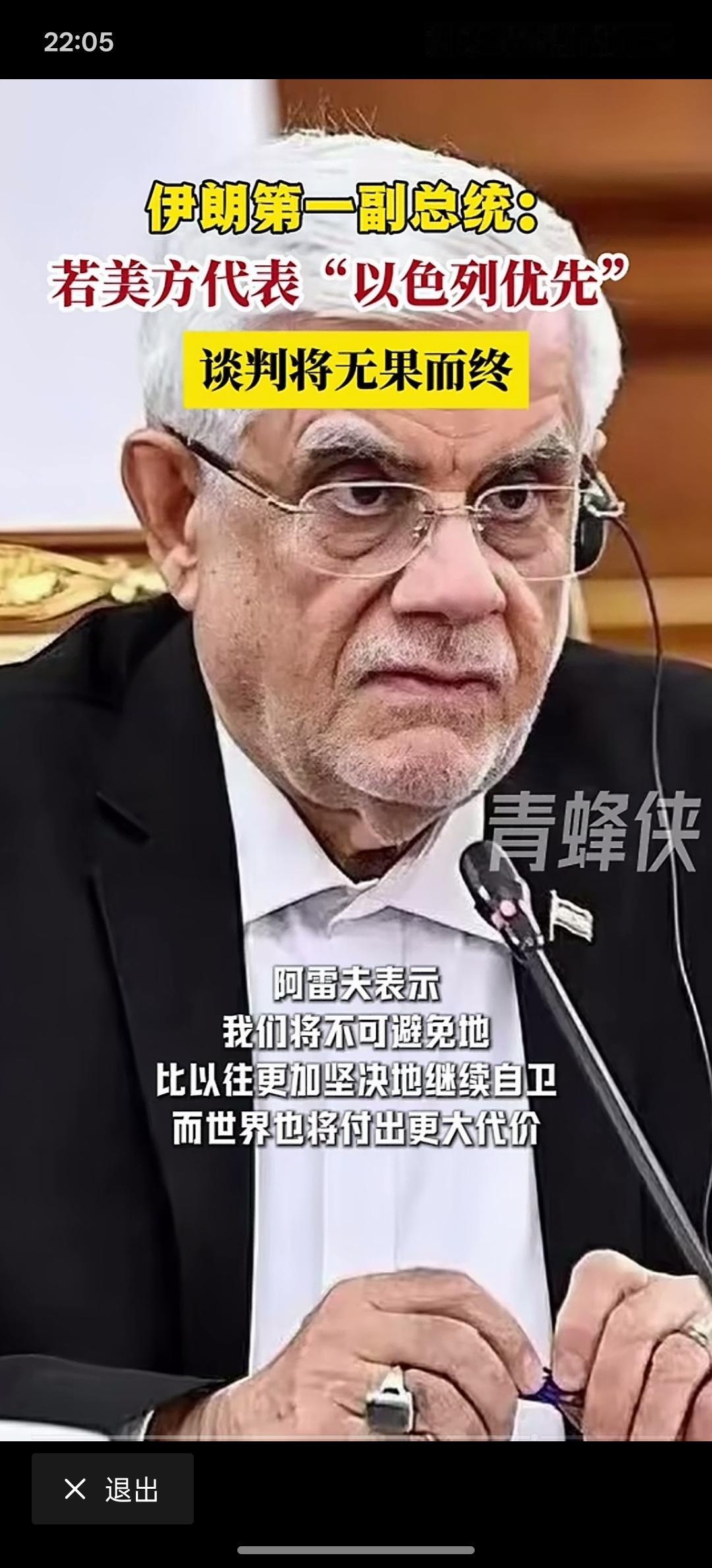 这已经很明确的表明了,把美国寄放在了世界的制高点,又让美国感觉到高处不胜寒,同样又把世界舆论压力传导了给美国!如果美国以以色列为优先的代表进行与伊朗谈判,那就是美国把世界放在火上烤!那整个世界都将付出更大的代价,那要怪就只能怪美国!
