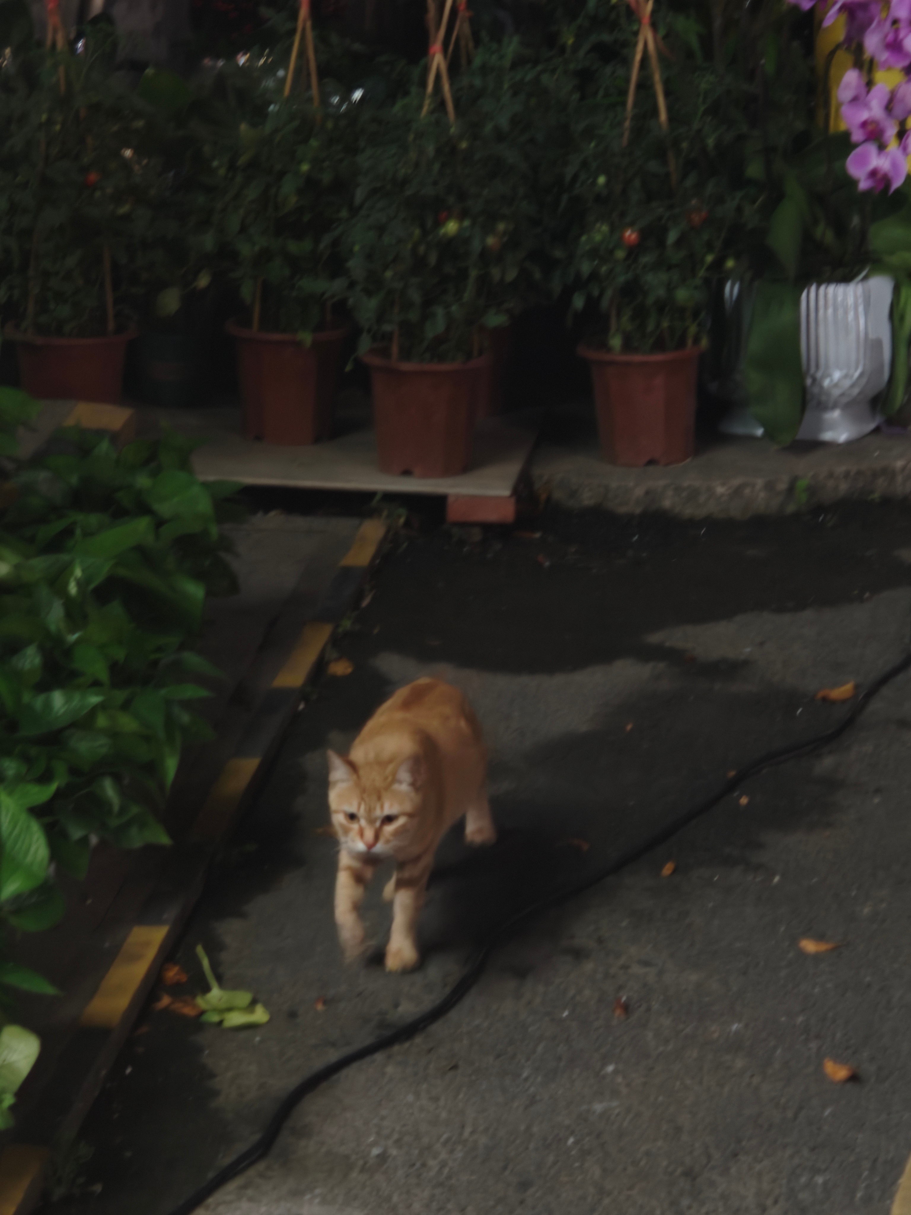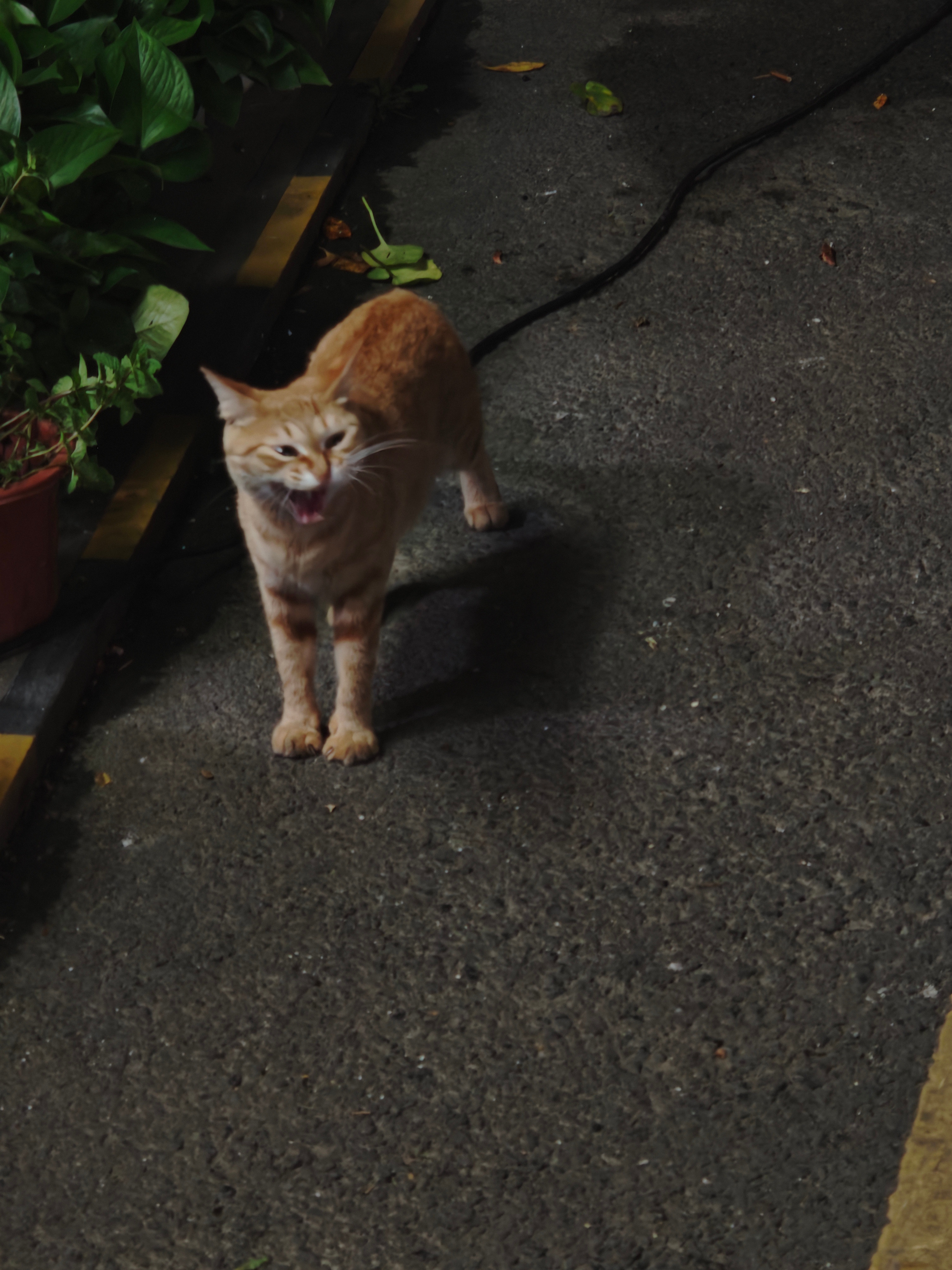 我叫了一声 喵。但此猫非常不满,迈着八字步朝我走来吼了两嗓子。