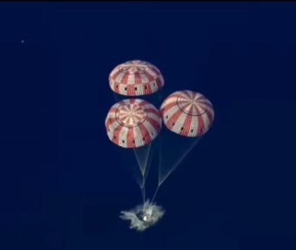 美载人绕月飞船返回地球并溅落在预定海域.--新华网