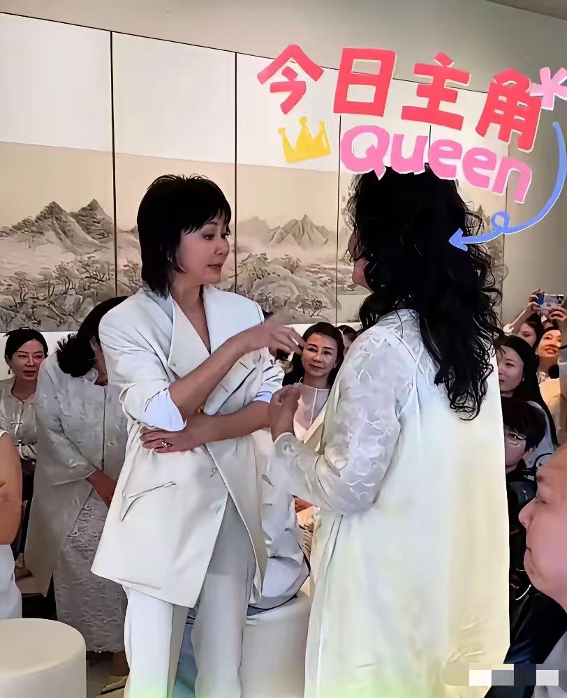 通过合照能看出刘嘉玲根本不屑于看她,拍照的时候,背对着她,和她说话时,抱着胸指点,一副瞧不起老赖的样子。