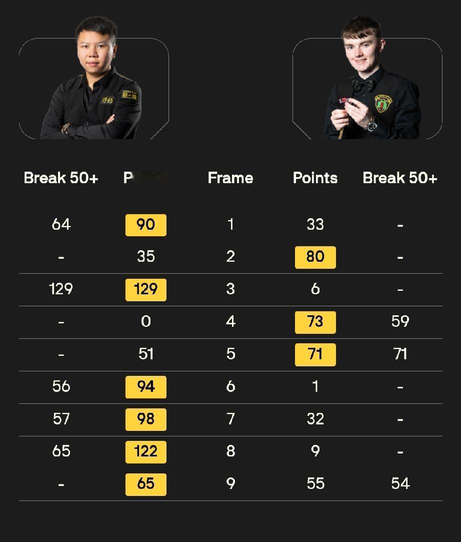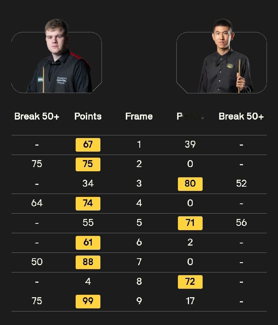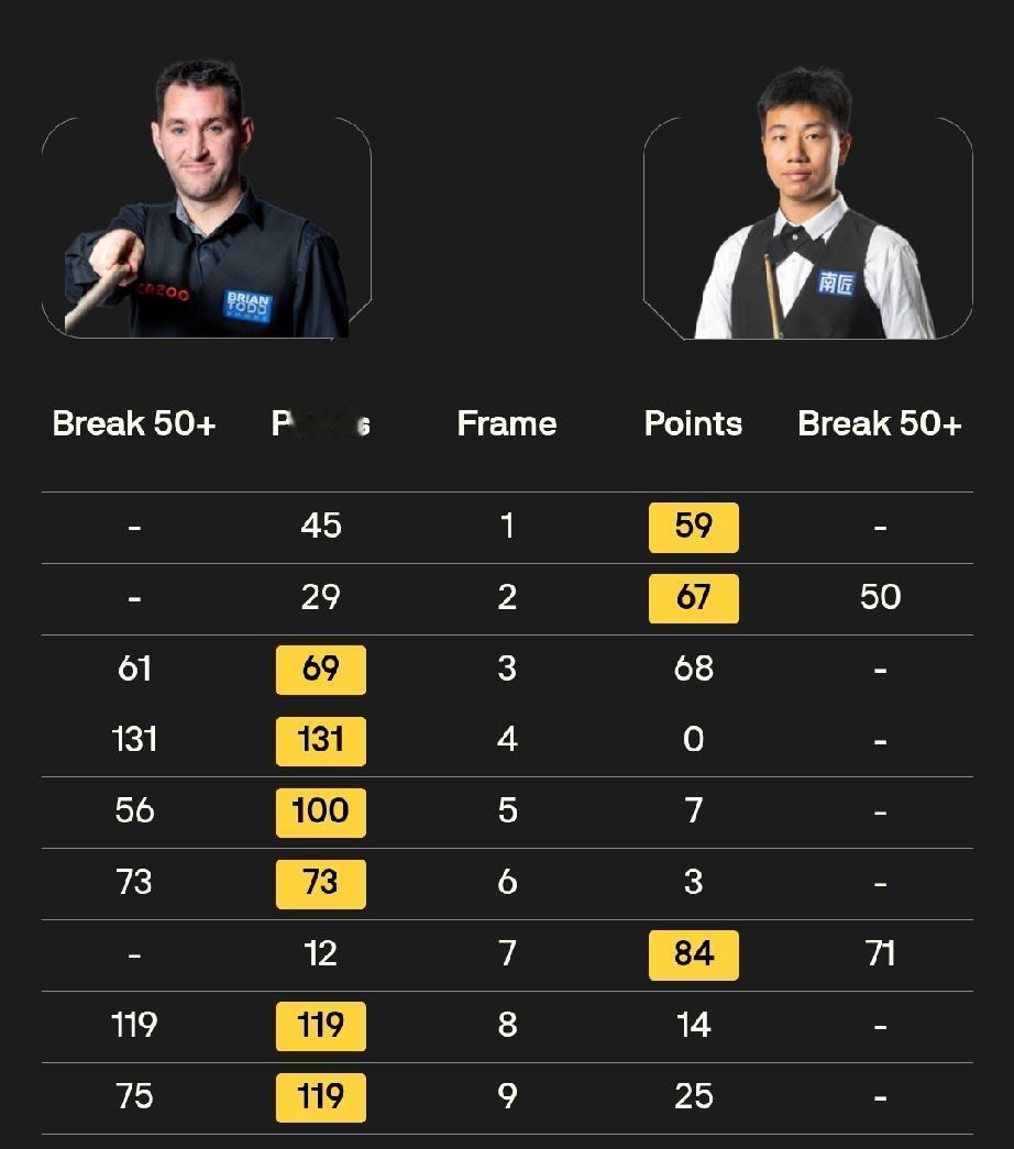 小将王信伯惨败,0-9落后打出两杆破百6杆50+的宾汉姆,命悬一线!