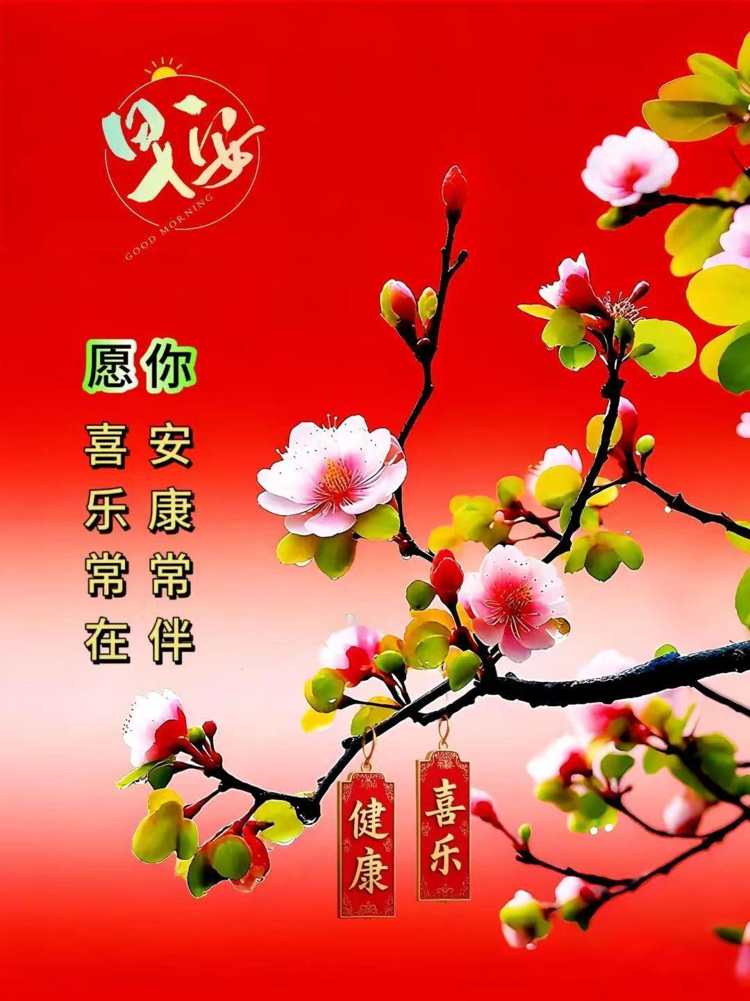 清晨一個願望, 點燃新的希望; 清晨一個祝福, 心情格外舒暢; 清晨一個問候,