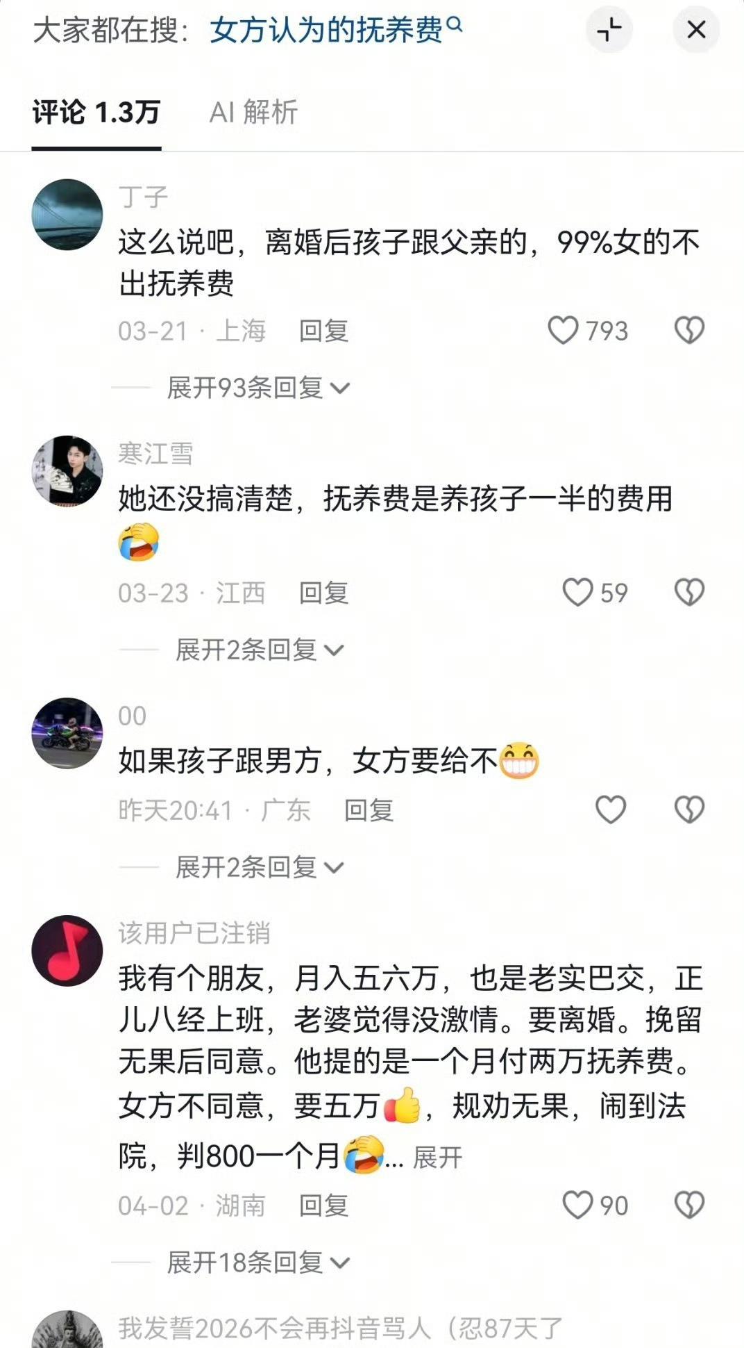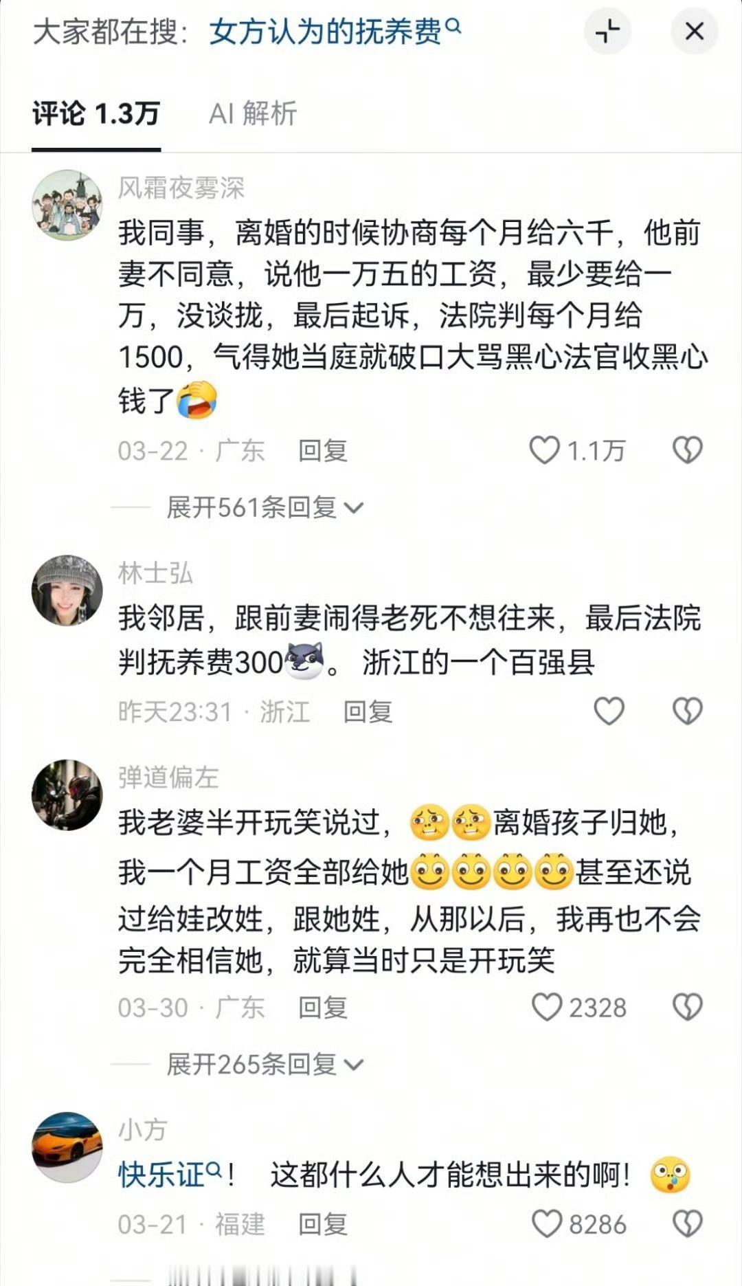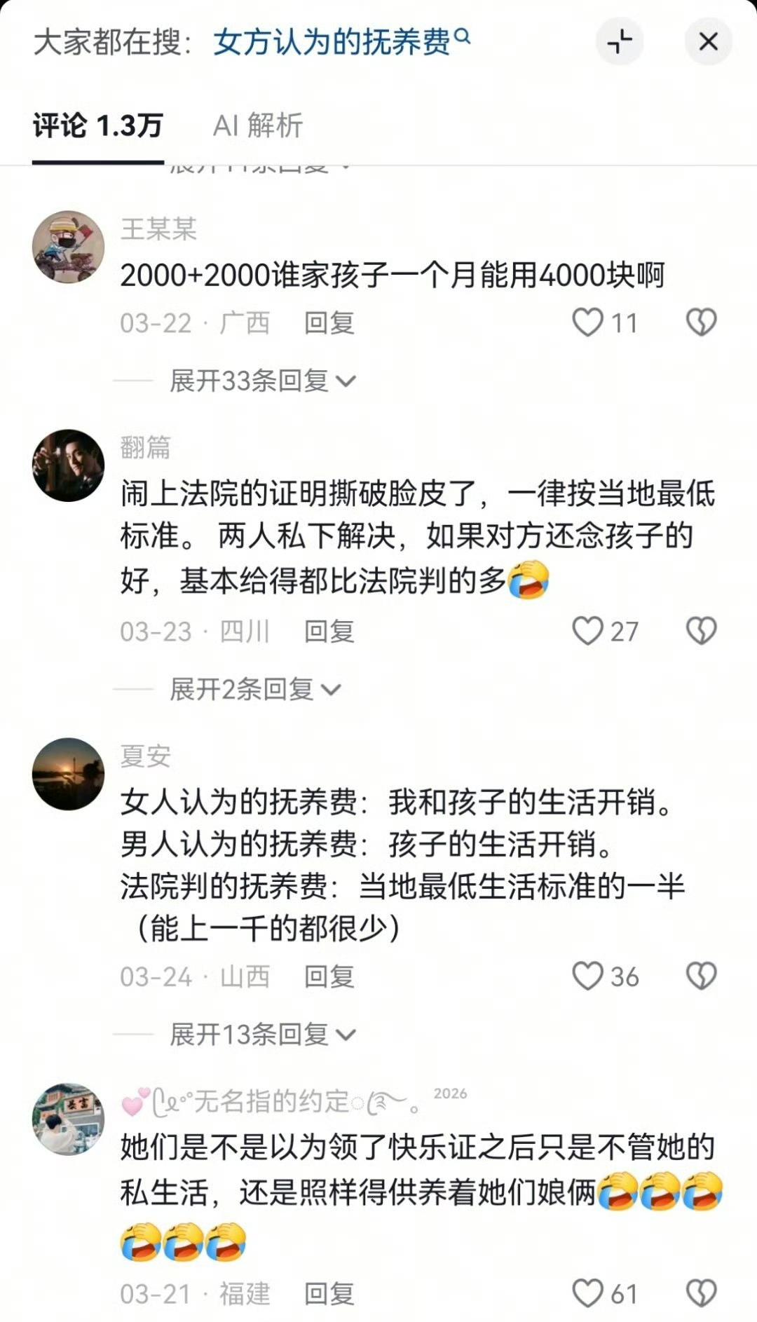 不过看情形,快乐也是有代价的啊。有网友分析,理论上,离婚男的出两千,女的出两千,完全够养孩子。实际上,离婚男的出两千,女的花一千二,孩子花八百!