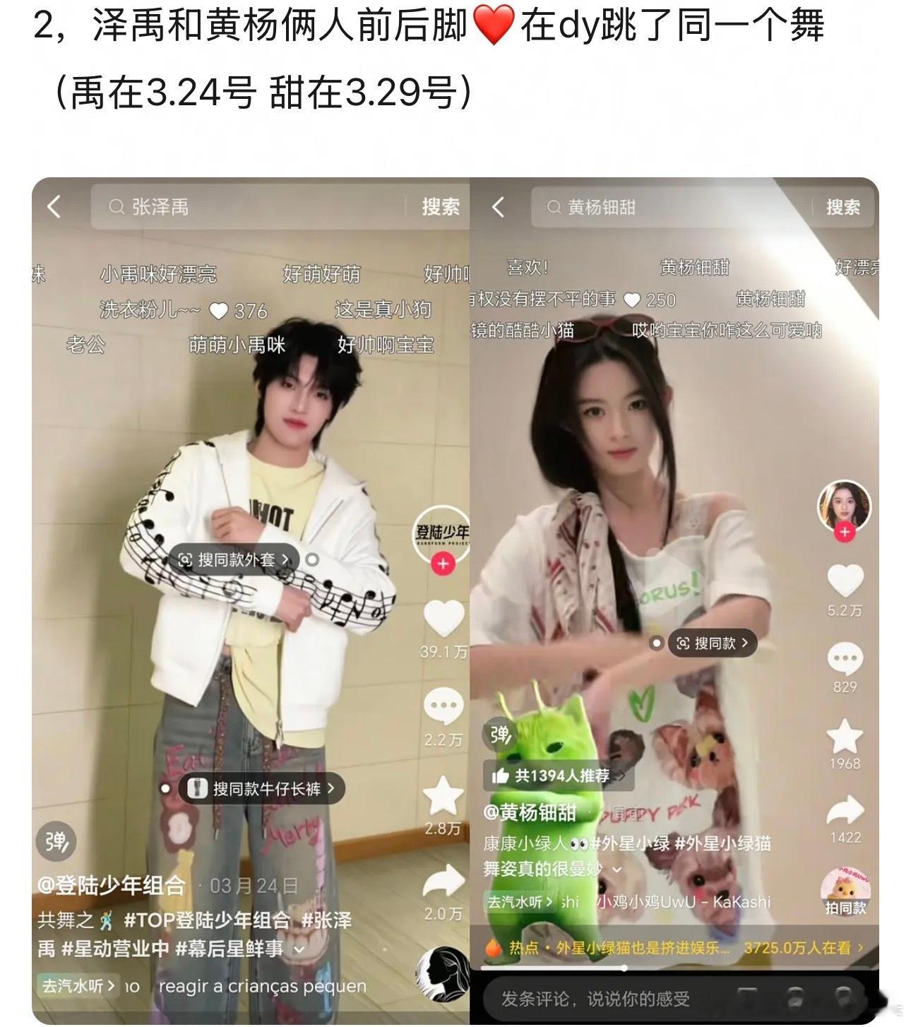 网友扒了黄杨钿甜和张泽禹的多个同款细节,感觉纯巧合但是巧合又太多了,俩人谈了吗?