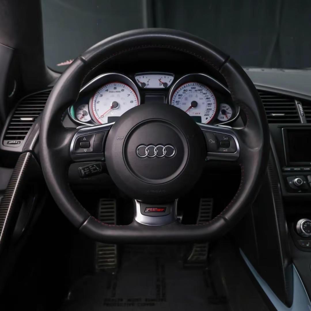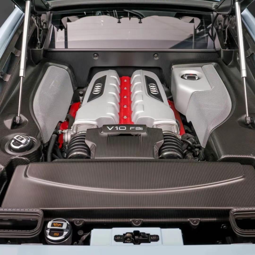 2012年,作为初代R8生命周期中的高性能收官之作,奥迪推出了限量版R8 GT。全球仅333台的产量,使其从诞生之初就带有收藏属性,而其中仅90台进入美国市场,这台编号282的个体,更具稀缺意义。整车采用奥迪Exclusive定制的Meissen Blue车漆,视觉上克制而独特,辅以碳陶瓷制动系统、增强版GT真皮内饰包、哑光碳纤维发动机舱饰件以及Bang & Olufsen音响系统,在性能与豪华之间取得微妙平衡。动力核心是一台5.2升FSI自然吸气V10发动机,最大输出560马力(约412千瓦),匹配6速R-tronic序列式变速箱,并通过quattro四驱系统驱动四轮。车内以黑色真皮为基调,搭配深红色缝线与大面积碳纤维饰板,营造出典型的德系高性能氛围。底盘部分采用可手动调节的绞牙悬挂系统,配合19英寸Y型锻造轮圈,在操控精准性与路感反馈之间展现出极高水准。放在当时的时代背景下,R8 GT不仅是性能参数的堆叠,更是一种工程思维下的纯粹表达。在电气化尚未席卷、涡轮化逐渐兴起的过渡阶段,这样一台高转速自然吸气V10、配以机械感强烈的序列式变速箱的超级跑车,显得尤为珍贵。它所承载的,不只是速度本身,更是一种逐渐消逝的机械时代浪漫。奥迪R8 性能车跑车 汽车知识分享计划