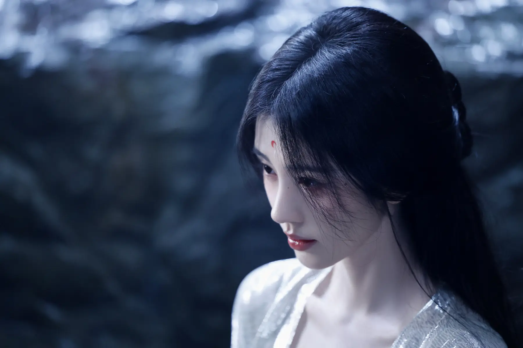 鞠婧祎着银纱古装水中出镜 湿发造型清冷出尘