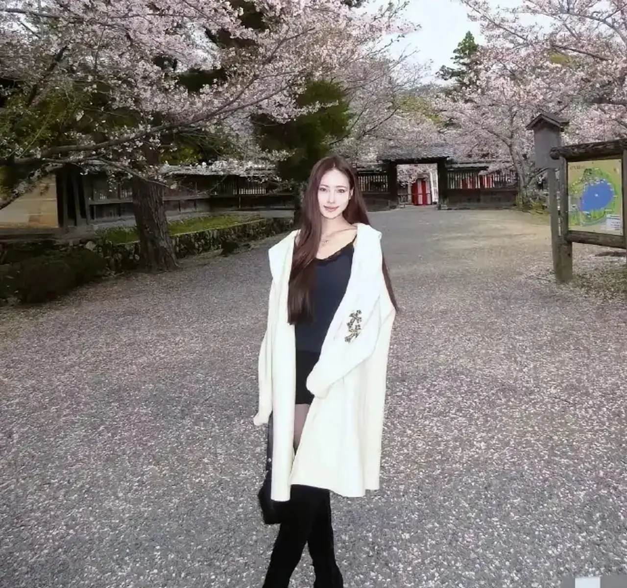 小S二女儿晒日本赏樱美照 穿浅色大衣身材高挑迷人