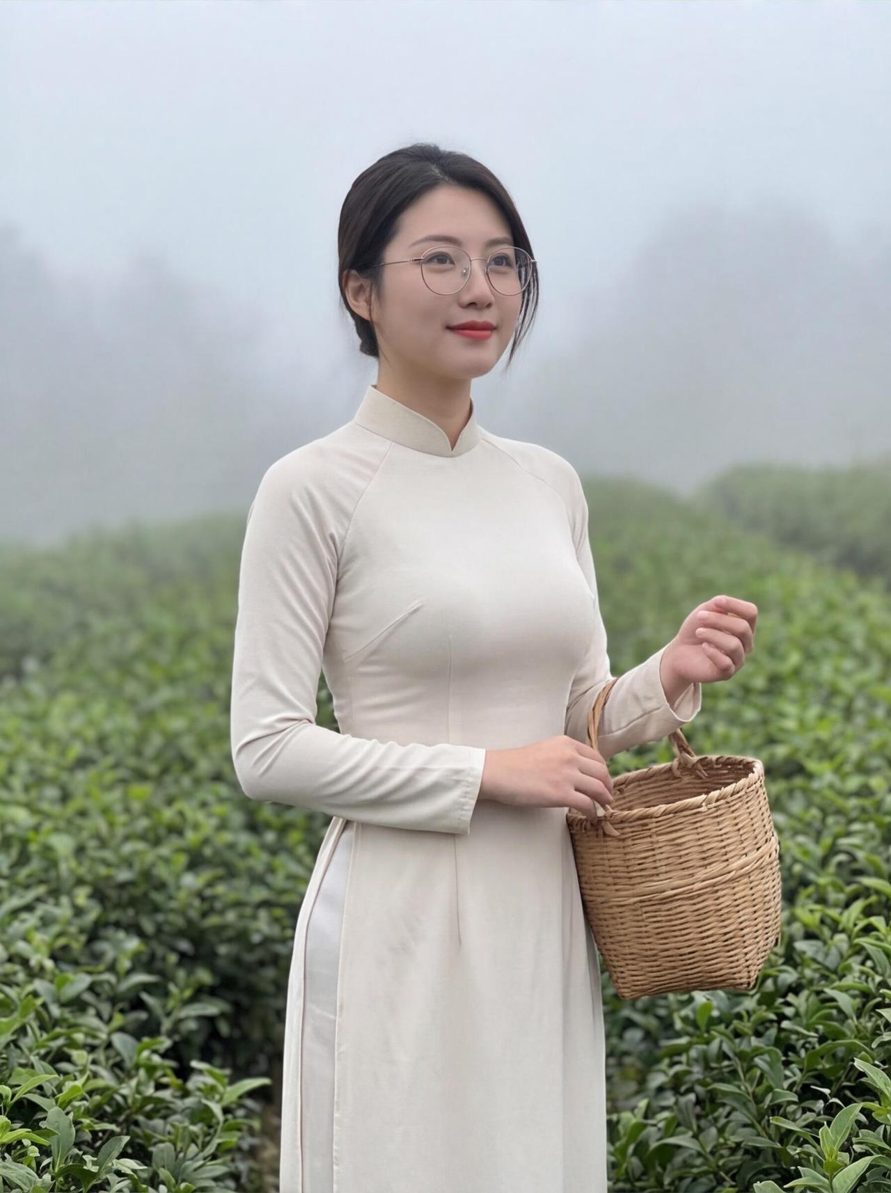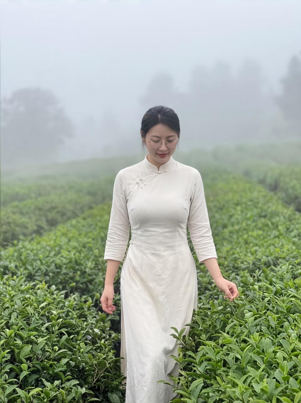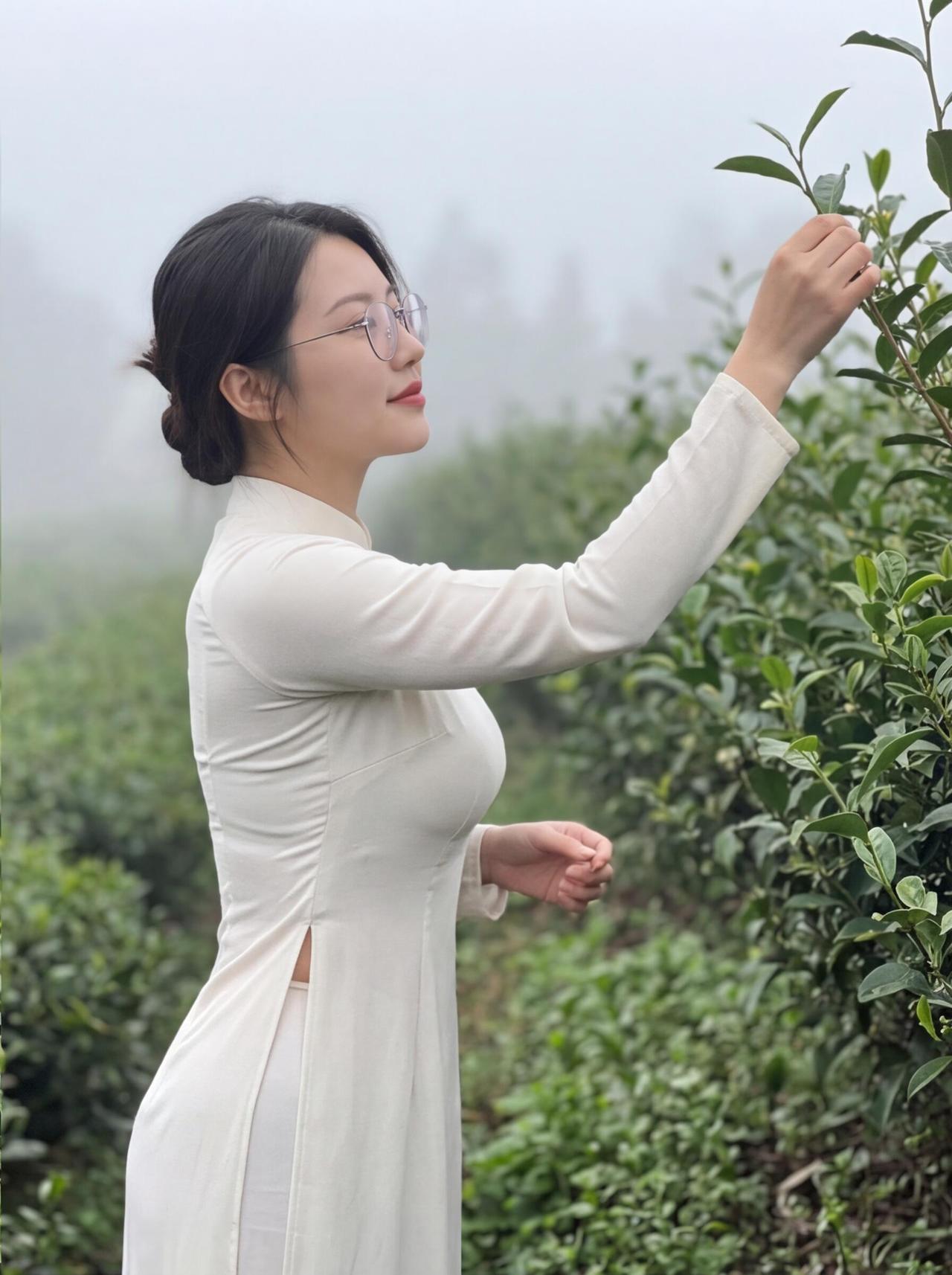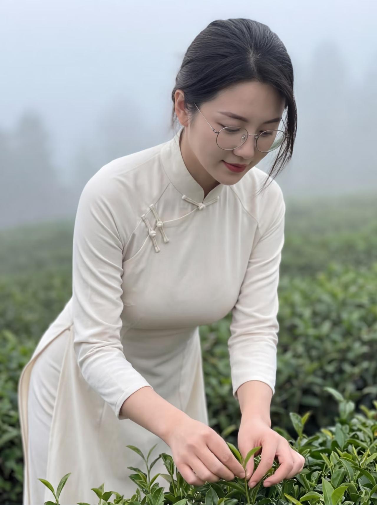 周末茶园里的微笑:手捧嫩叶,心怀自然。
