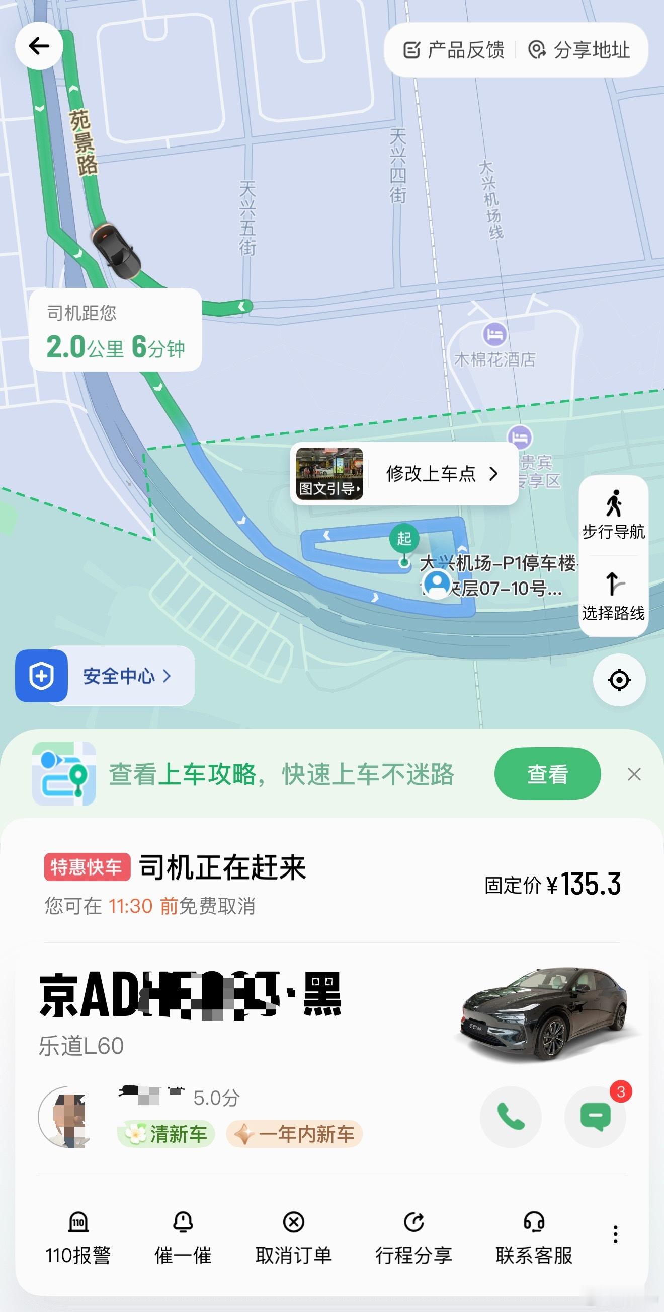 来北京大兴机场极限转场,打了一台特惠快车乐道L60……