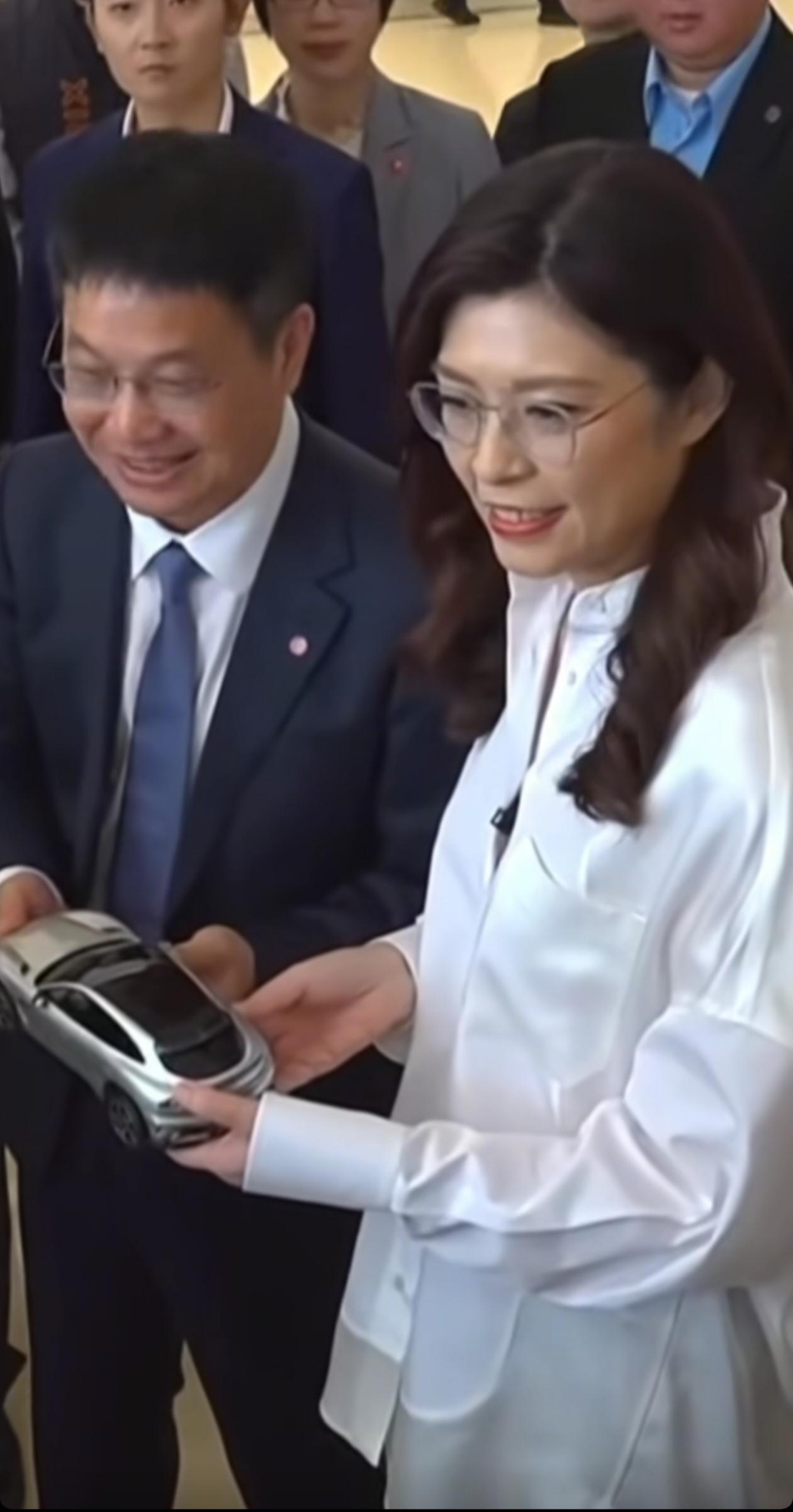 郑丽文参观小米汽车工厂,小米集团董事长雷军亲自出面接待,并当场向郑丽文赠送了一台