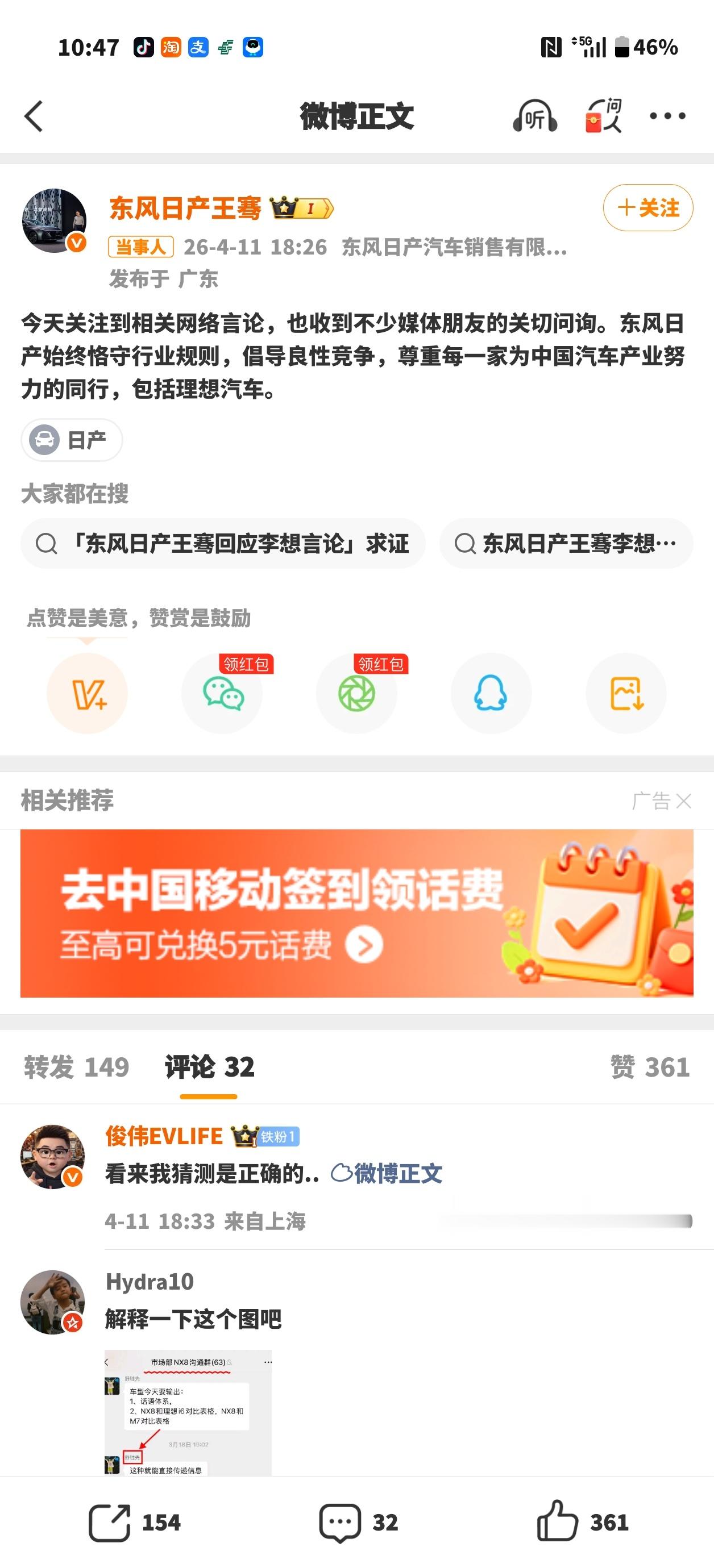 东风日产高管回应理想汽车 拉踩一下就受不了了🤦♂️不仅仅是公司法务包括 CEO