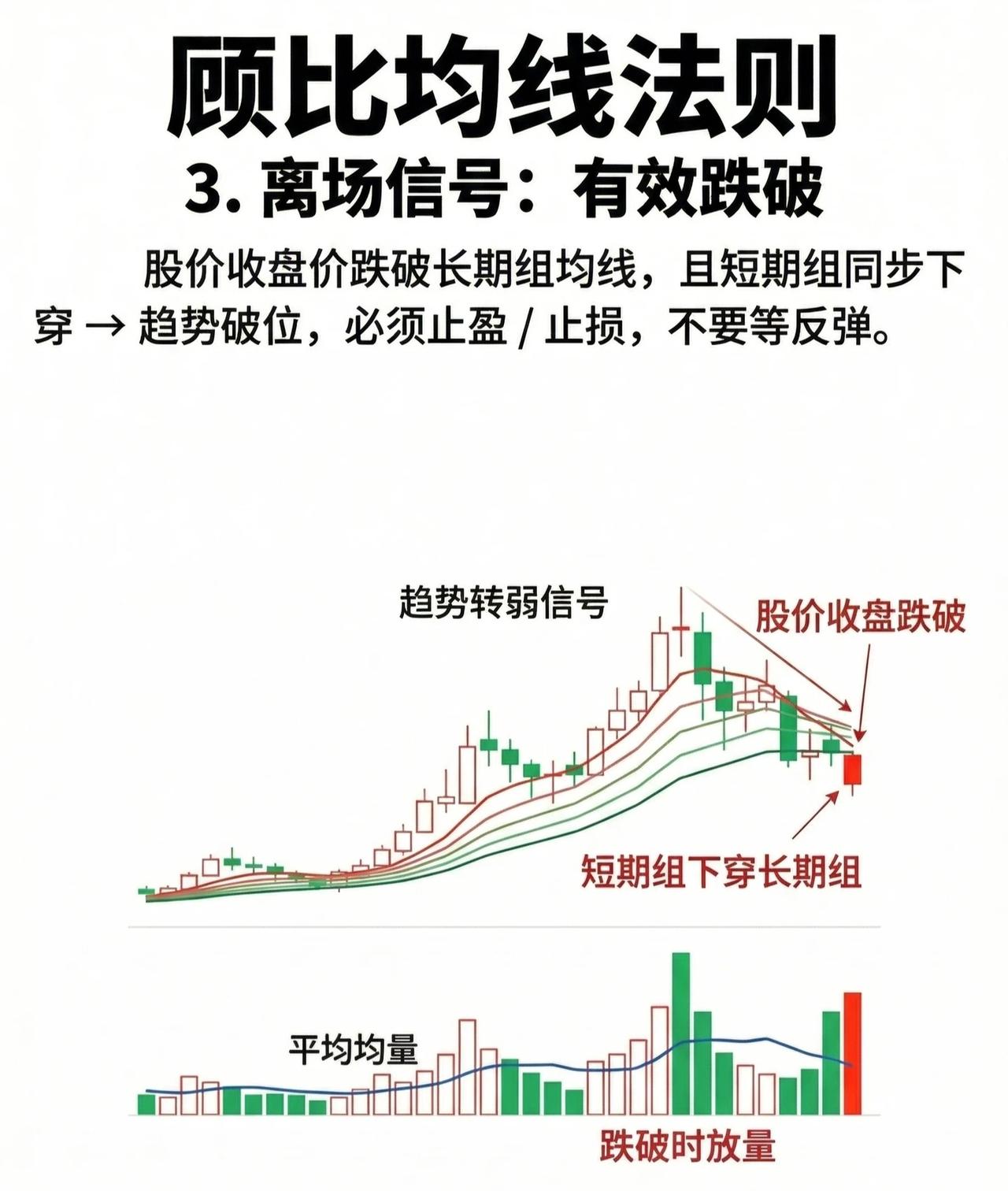 3. 离场信号:有效跌破长期组 + 短期组同步下穿