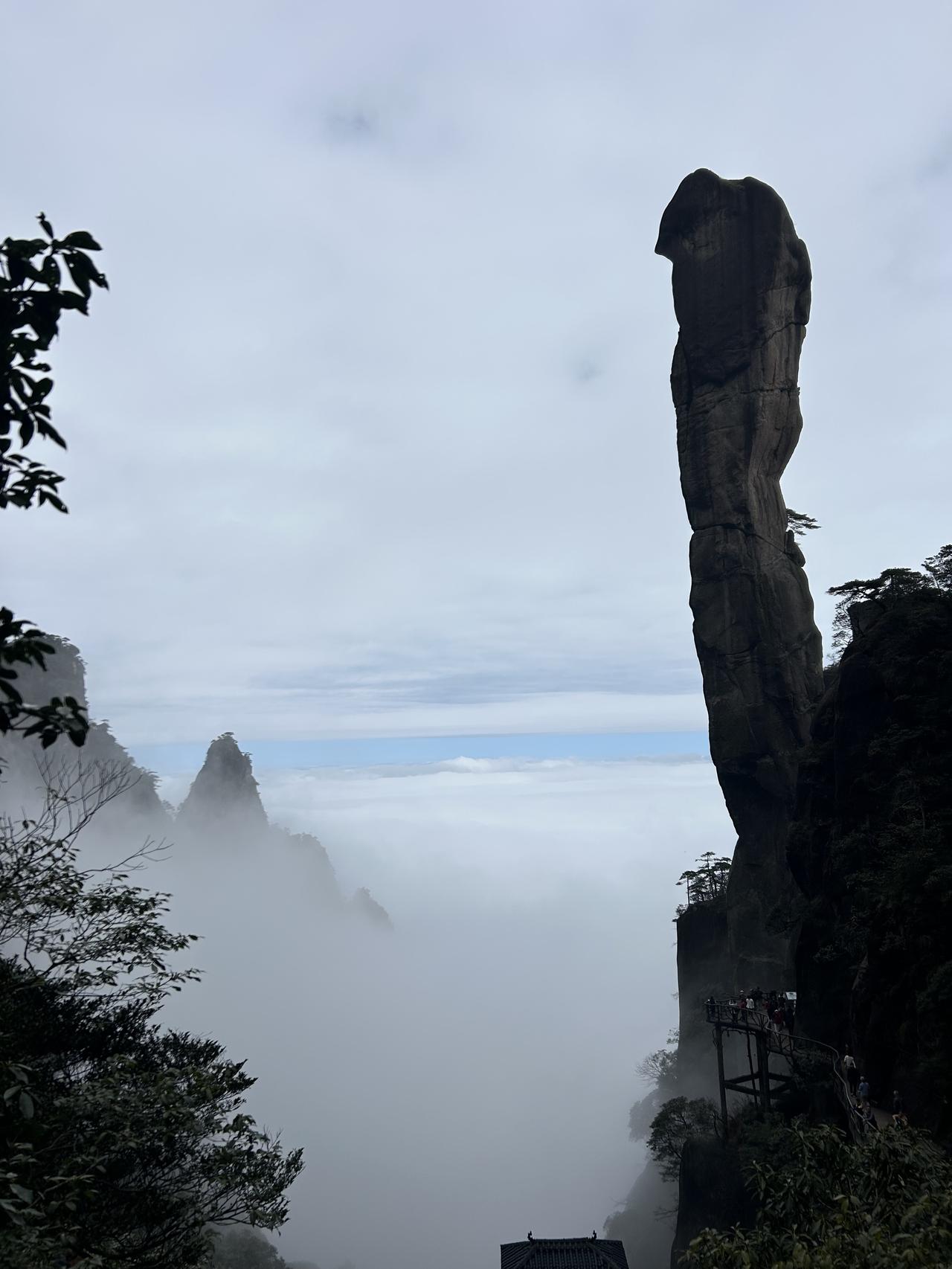 虽说三清山的楼梯步道着实难行,毕竟我许久未曾爬山。我从外双溪索道上山,再从金沙索道下山,得以近距离目睹巨蟒出山和女神山峰的风采。起初,我乘坐滑杆上山,花费400元,入住日上山庄。下午,我自行游览了西海岸沿线和东海岸,在仙人指路处下山返回日上山庄休息。