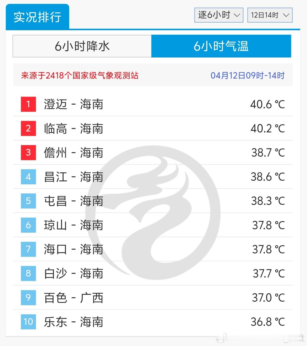 【气温】今天海南继续高温。澄迈连续7天最高气温冲上40℃,继续改写当地最长连续4