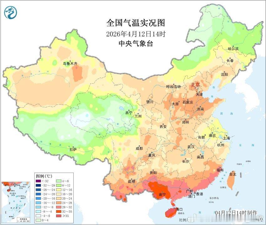【气温】今天海南继续高温。澄迈连续7天最高气温冲上40℃,继续改写当地最长连续40℃日数纪录。海口也连续8天出现35℃以上高温,追平当地4月最长连续高温纪录。今天因为阴晴的光照差异,从辽宁到江浙沪,气温分布形成南北倒挂。沈阳下午有22℃,创今年气温新高,明显高于同时次的上海南京。