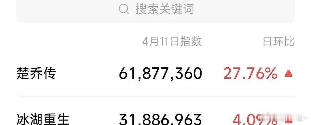 开播仅第5天,冰湖重生已被楚乔传全面反超爱奇艺腾讯热搜榜冰湖重生已下榜